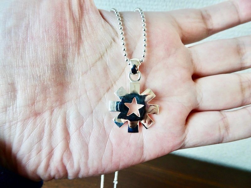 ごらん頂きありがとうございます。 オリジナルブランド 仁尾彫金『クリ抜きスター、プラチナペンダント』を出品致します。 オリジナルのアクセサリーを自ら制作しています。今回、長方形を重ね合わせた幾何学立体を造形から、スターの形をクリ抜きました。バチカンを含めまして縦約3.2cm、横2.2cmです。全てプラチナの塊で重量も約13gありズシリとしています。最大厚みは約2.6mmあります。全てプラチナの塊なので変色する事はありません。 デザイン、制作を私自身で行っている為、新品をご用意致します!! シルバー925ボールチェーンネックレス50cm(45から50cmサイズ調節可)も付属致します。 *こちらの作品につきまして制作に3週間程度かかります。m(_ _)m プラチナ900 約13g (pt900刻印あり) ご質問等ございましたらお気軽にaerothmith@mac.comへご連絡下さい。m(_ _)m 金プラチナにつきましてはフルオーダー制作も承っていますので、ご質問等ございましたらお気軽にaerothmith@mac.comへご連絡下さい。m(_ _)m その他も出品していますのでご覧下さい。m(_ _)m *インスタにて仁尾彫金で制作状況を掲載していますのでお気軽にご登録をお願い致します。(^-^) |