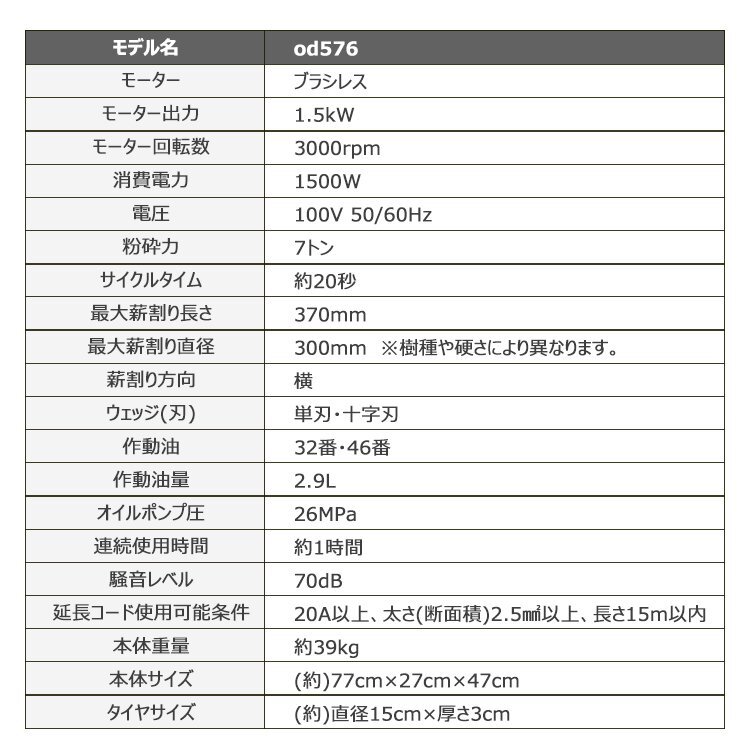 電動式薪割り機7t 薪割り機 電動 強力 操作簡単 カッター 直径300mmまで対応 キャスター 小型 家庭用 ログ 薪ストーブ 暖炉 焚き火 od576