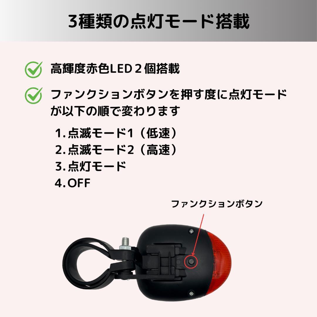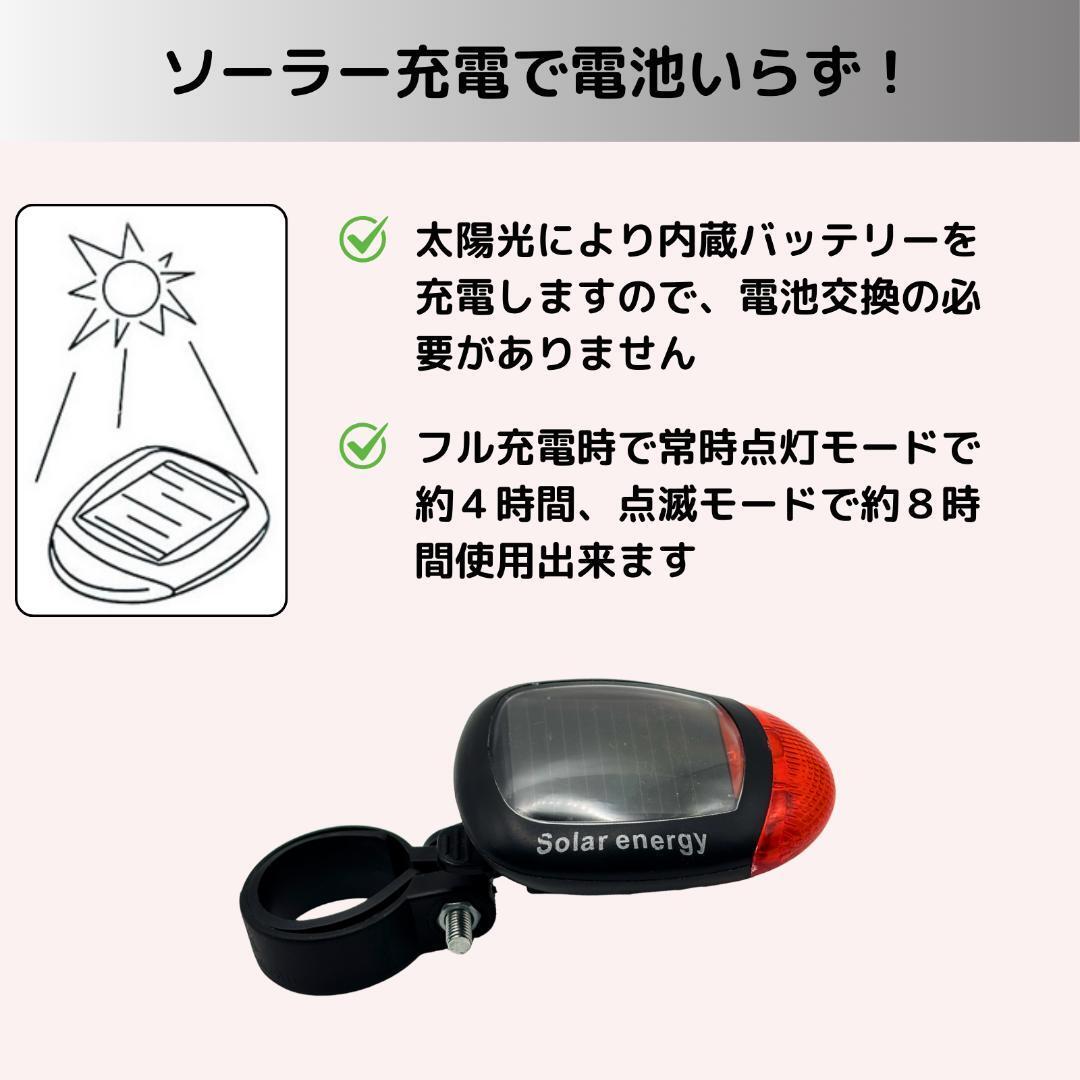 ・ソーラー充電式で電池不要!経済的に使用できる自転車用LEDテールランプです。