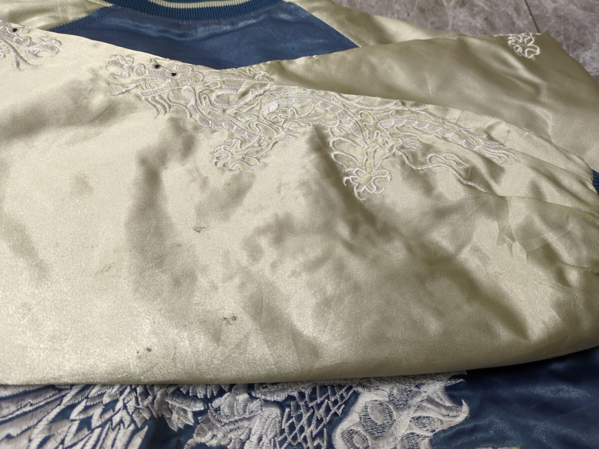 | 正規品です。 【肩幅】ラグラン 【着丈】56 【身幅】51 【袖丈】53 【ウエスト】 【総丈】 【股下】 【裾幅】 ブルー系 ベージュ系白 袖や裾に汚れ 使用感があります |