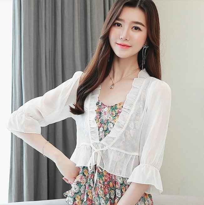 ・さらっと羽織っていただけるシアー素材感のサマーカーディガン。フリルがエレガントで女性らしい印象です。