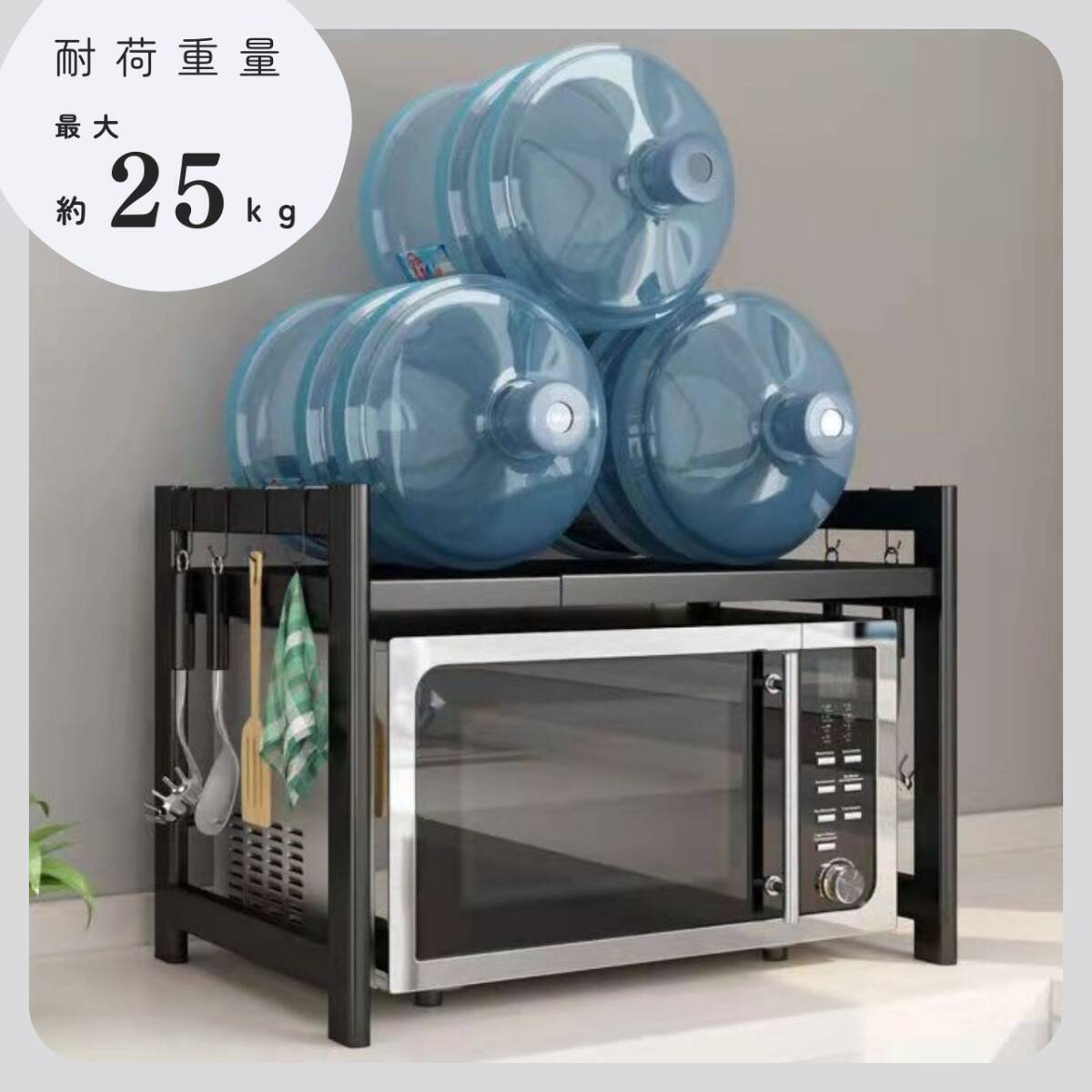 セール アウトレット レンジ台 キッチン ラック レンジラック 訳あり品 伸縮 食器棚 トースター 炊飯器 42-64cm 電子レンジ棚 黒 ブラック