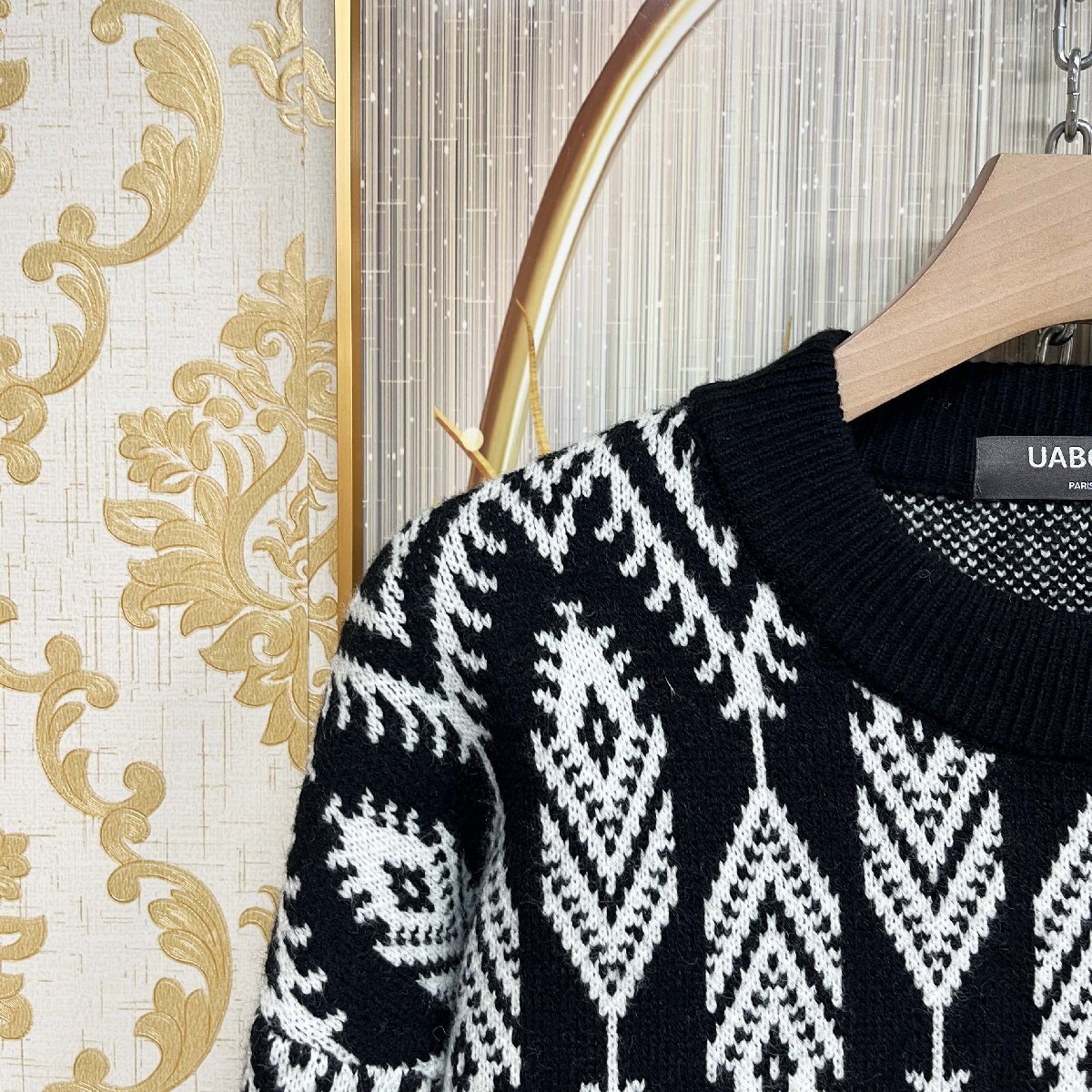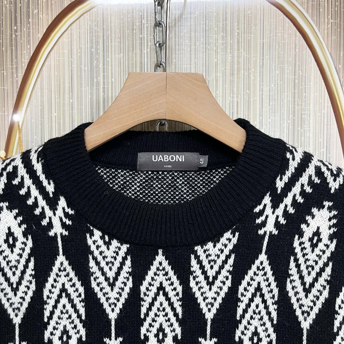 上級EU製&定価4万◆UABONI*Paris*セーター*ユアボニ*パリ発◆ウール混 洗練 暖かい 総柄 着痩せ カットソー ニット カジュアル 秋冬 L/48サイズ