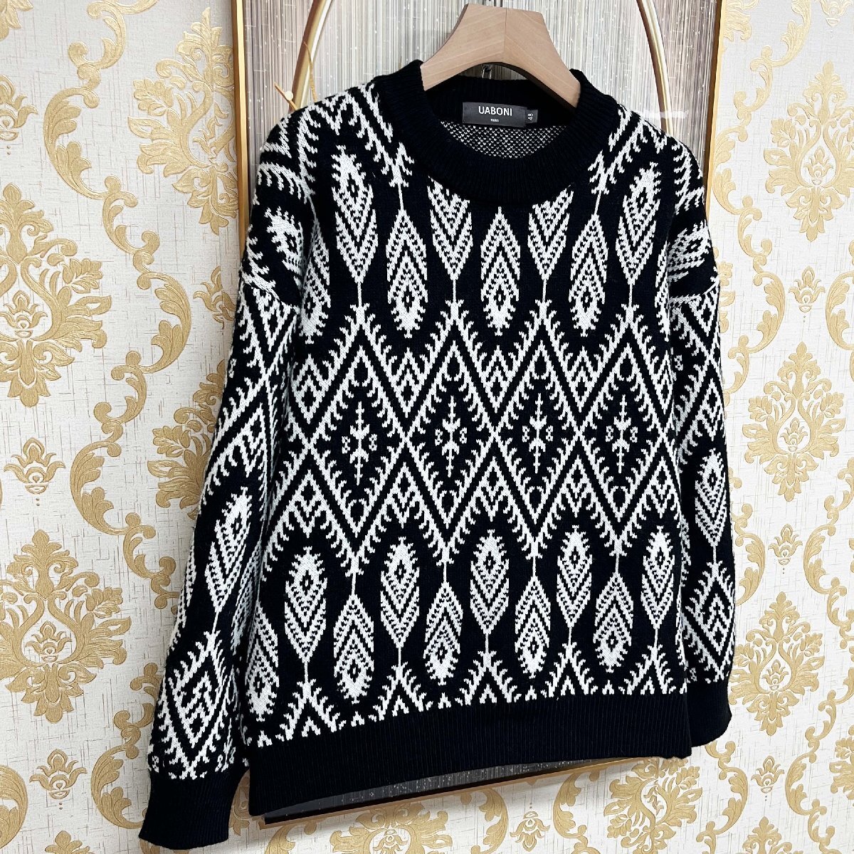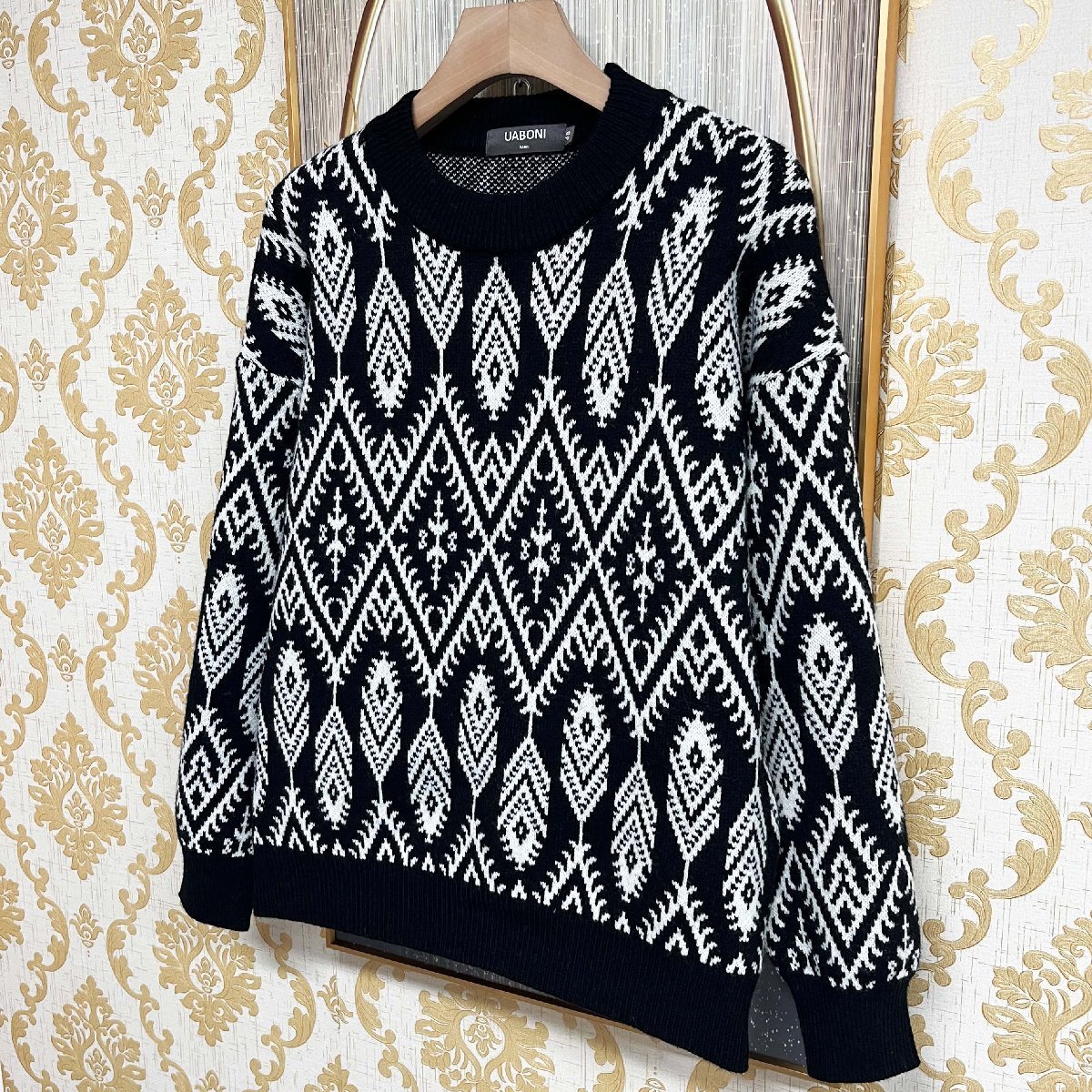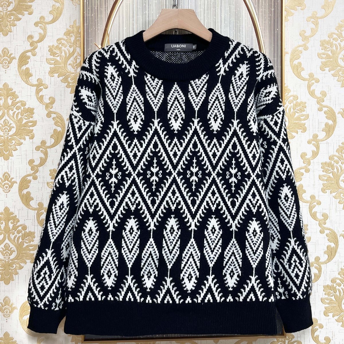 上級EU製&定価4万◆UABONI*Paris*セーター*ユアボニ*パリ発◆ウール混 洗練 暖かい 総柄 着痩せ カットソー ニット カジュアル 秋冬 L/48