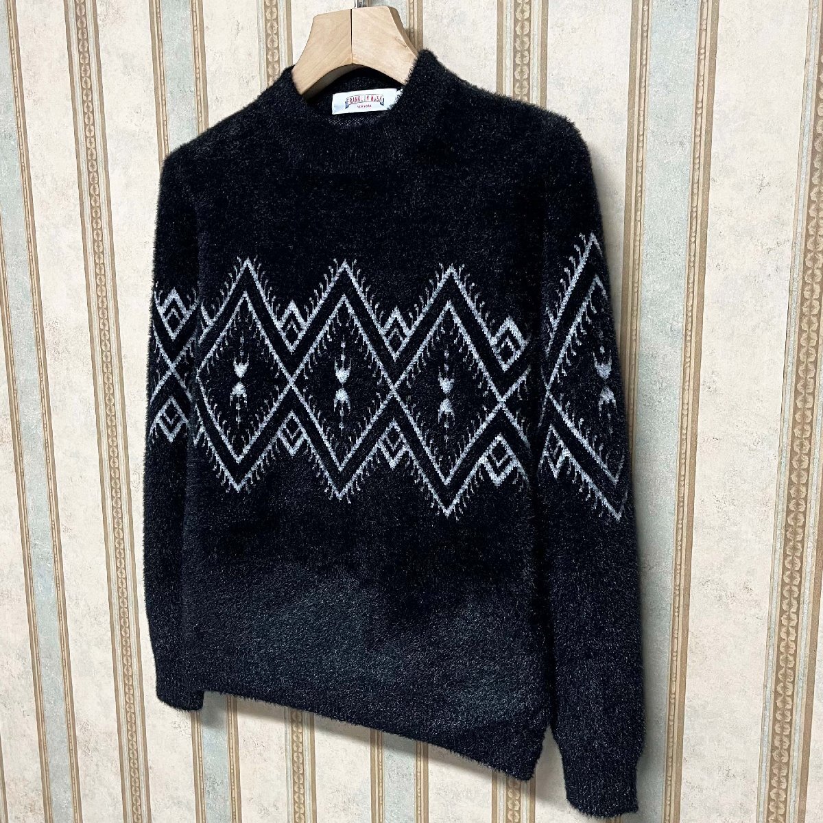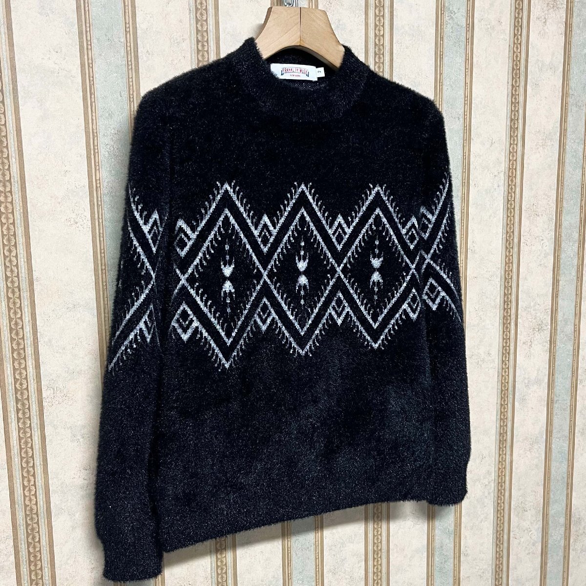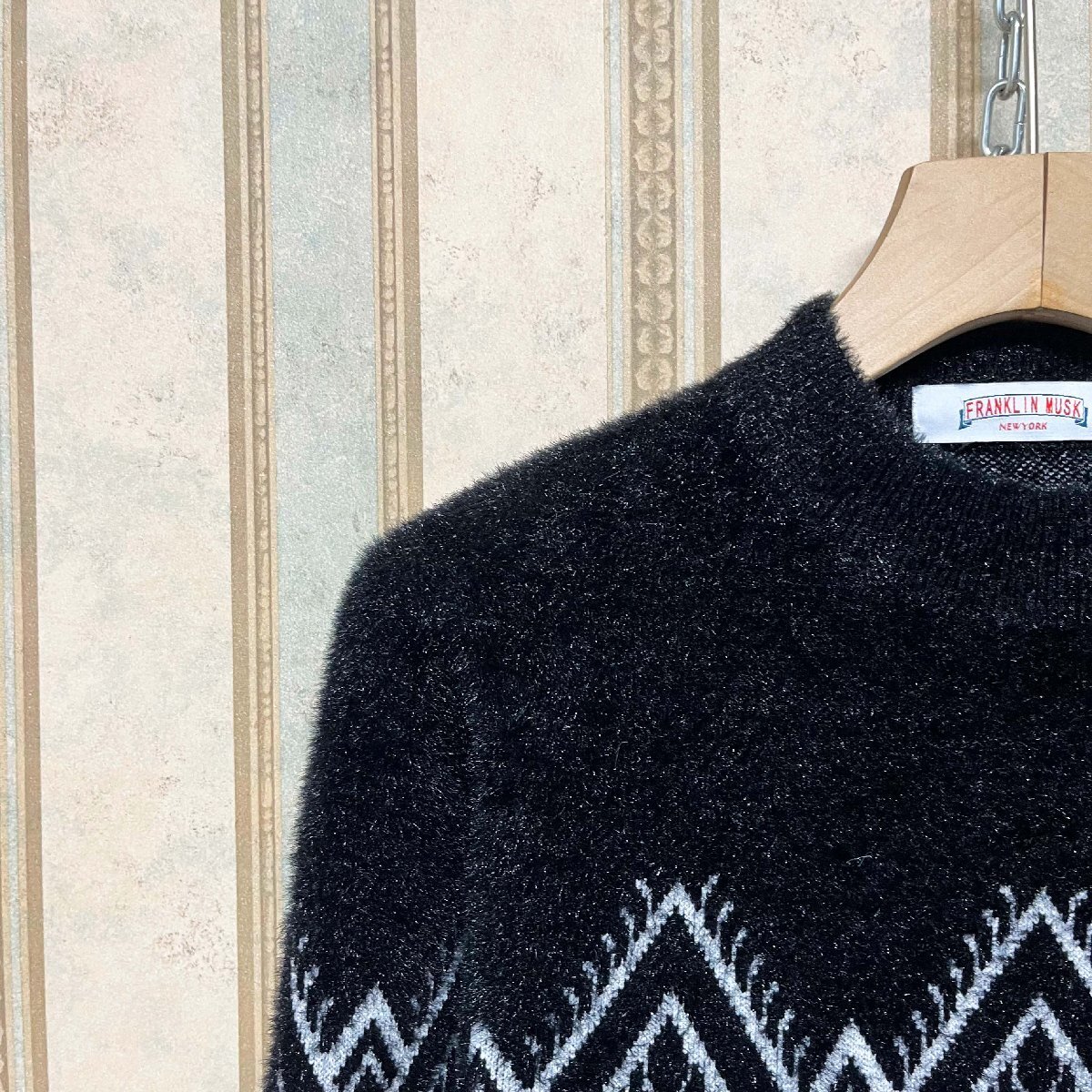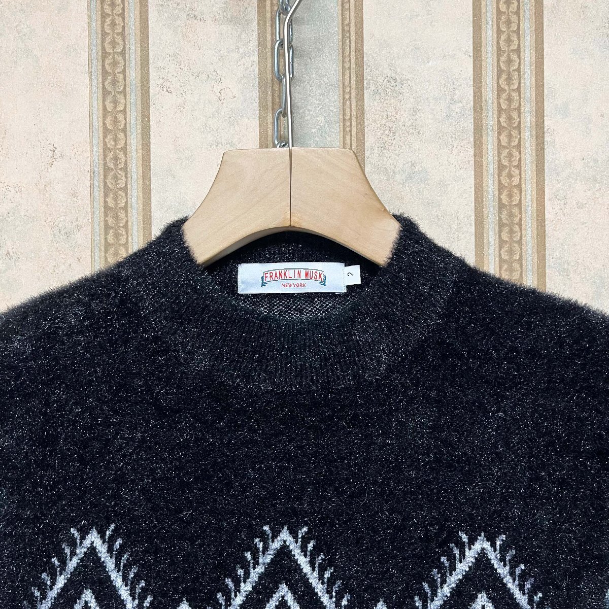 定番 定価5万 FRANKLIN MUSK・アメリカ・ニューヨーク発 上質カシミヤ混 柔らかい ニット アーガイル柄 トレーナー カジュアル サイズ2