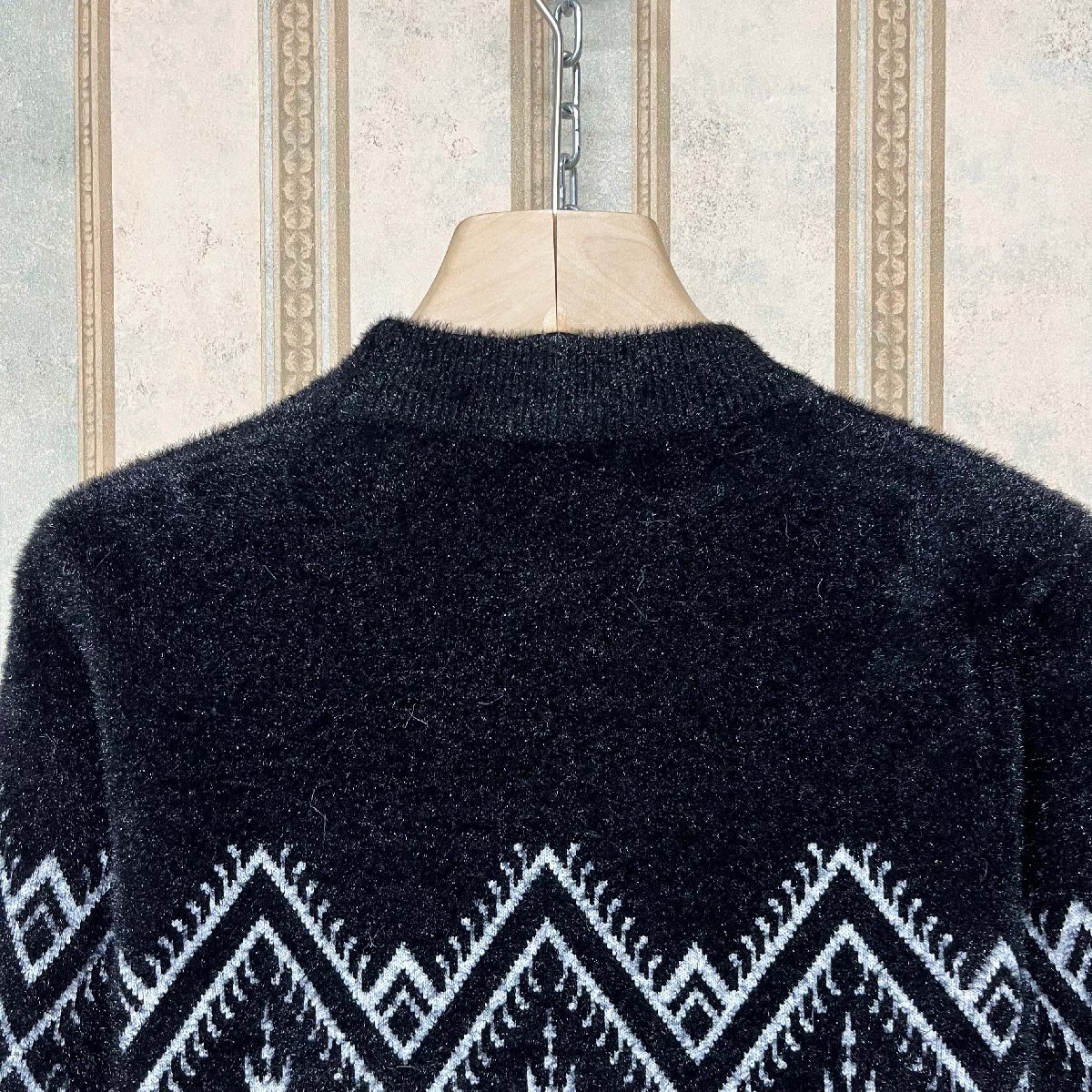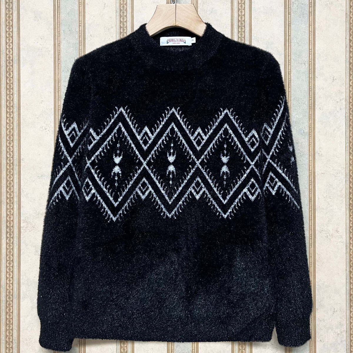 定番 定価5万 FRANKLIN MUSK・アメリカ・ニューヨーク発 上質カシミヤ混 柔らかい 光沢 保温 ニット アーガイル柄 トレーナー カジュアル 秋冬 サイズ2