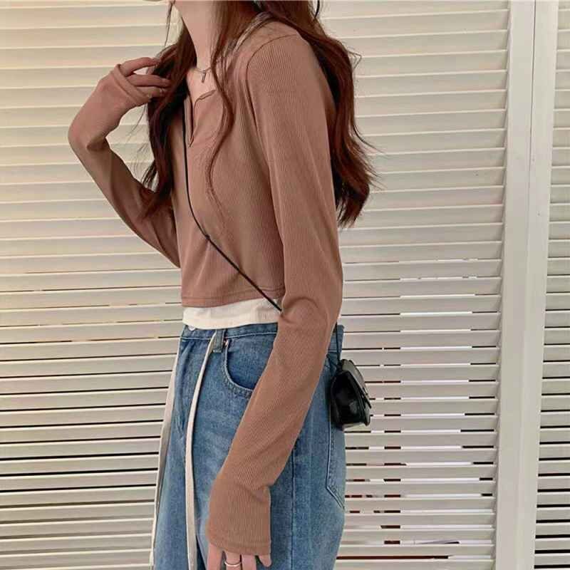 首回りをすっきり見せてくれるキーネックトップスです。
