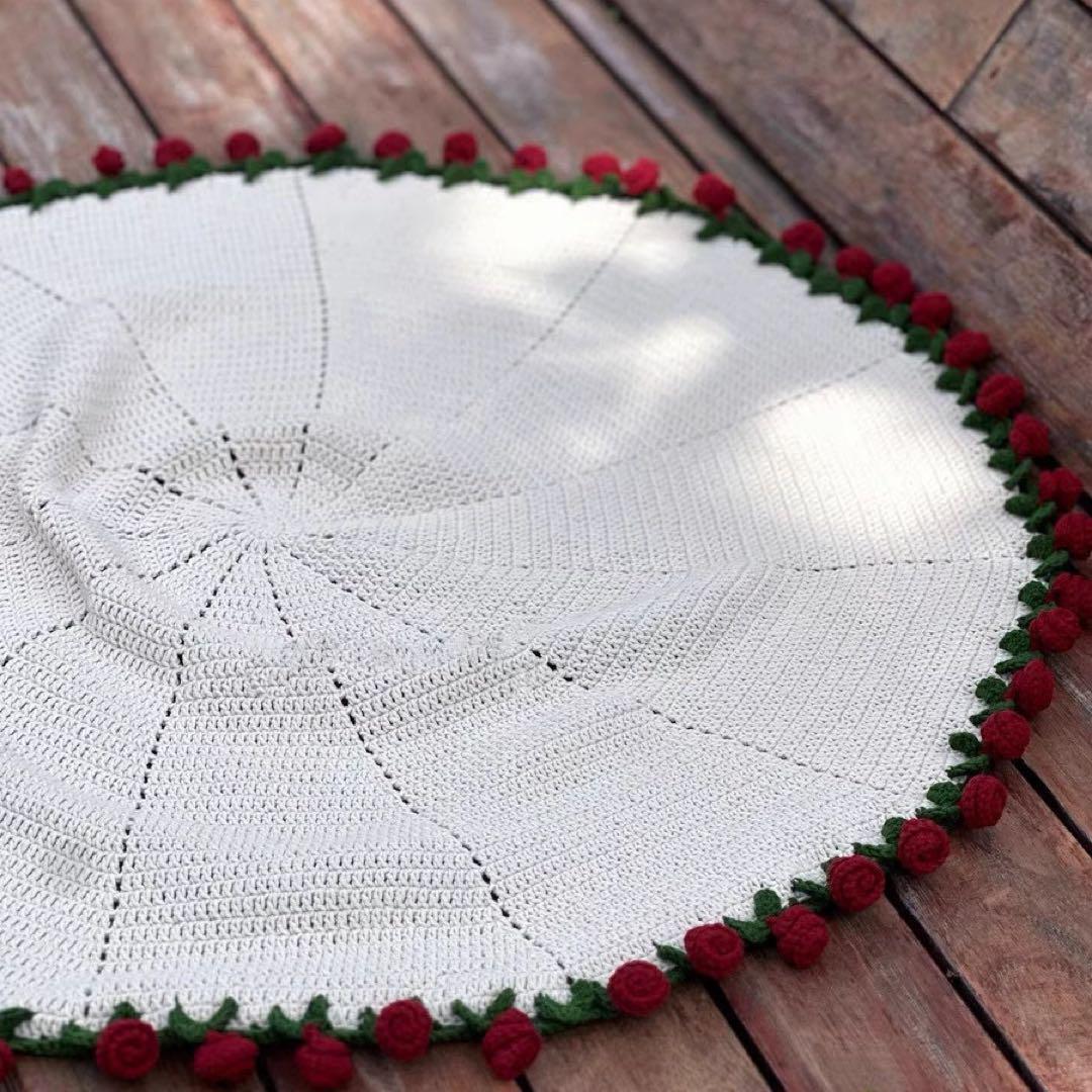 広げれば直径60cmの円形ブランケット、丸めればバラの花束に変身するユニークなデザイン。