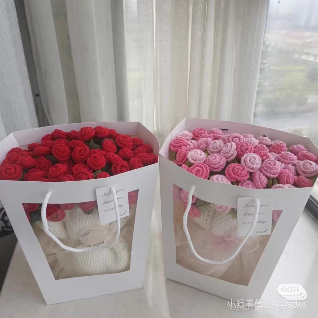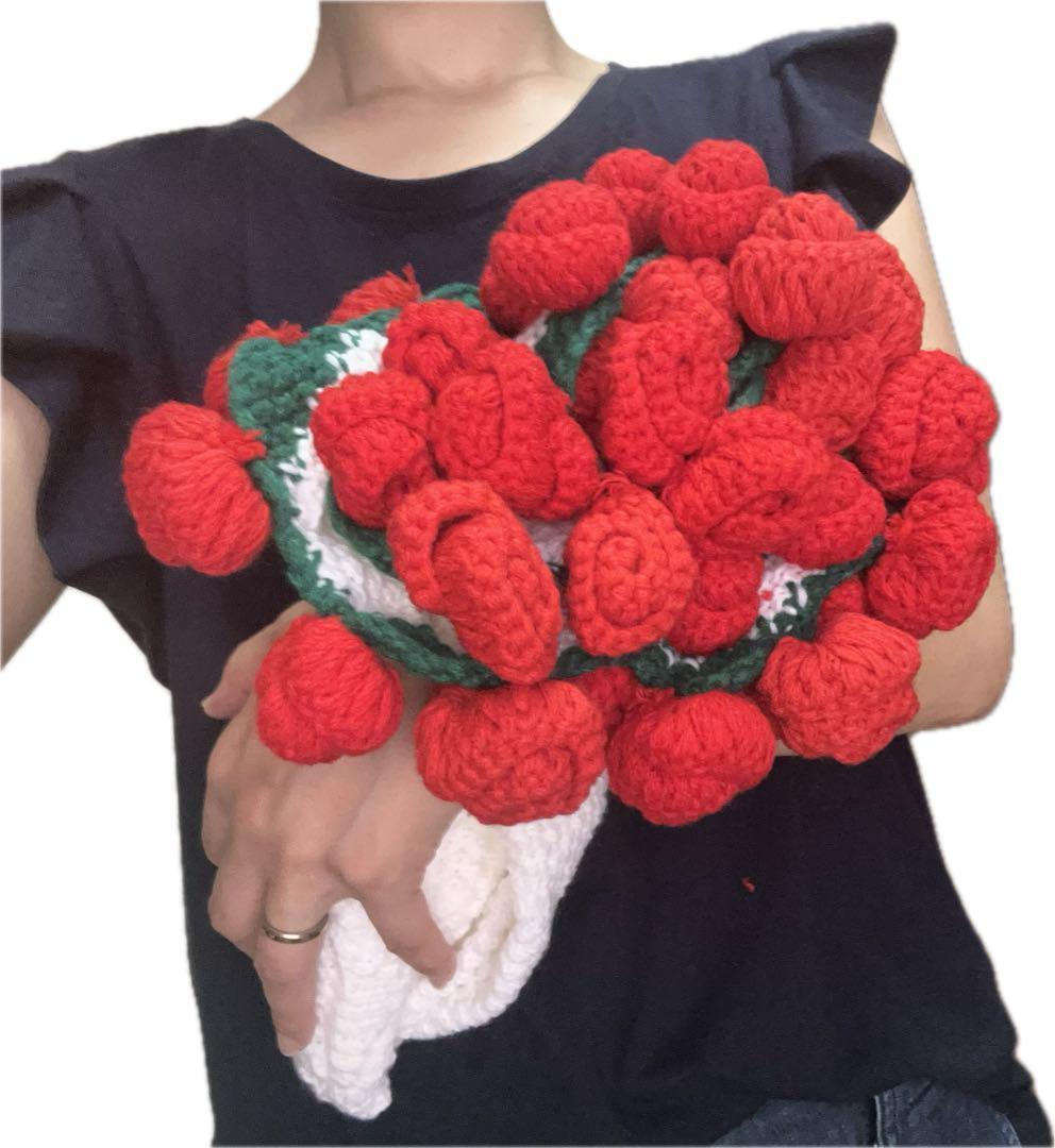 本物の花束のように見える立体的な編みバラは細部まで丁寧に仕上げられており、贈る相手に感動を届けます。テーブルコーディネートやインテリアのアクセントとしても活躍。SNS映えも間違いないです*