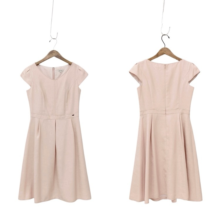 総丈前48、後45cm、ワンピース肩幅36cm、身幅42cm、袖丈9cm、ウエスト35cm、総丈92cm