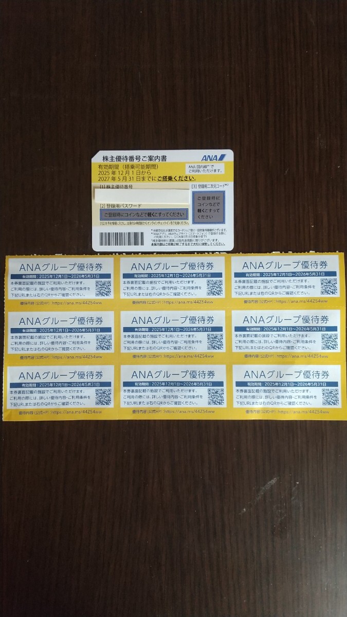 株主優待番号ご案内書1枚とANAグループ優待券9枚綴りです。