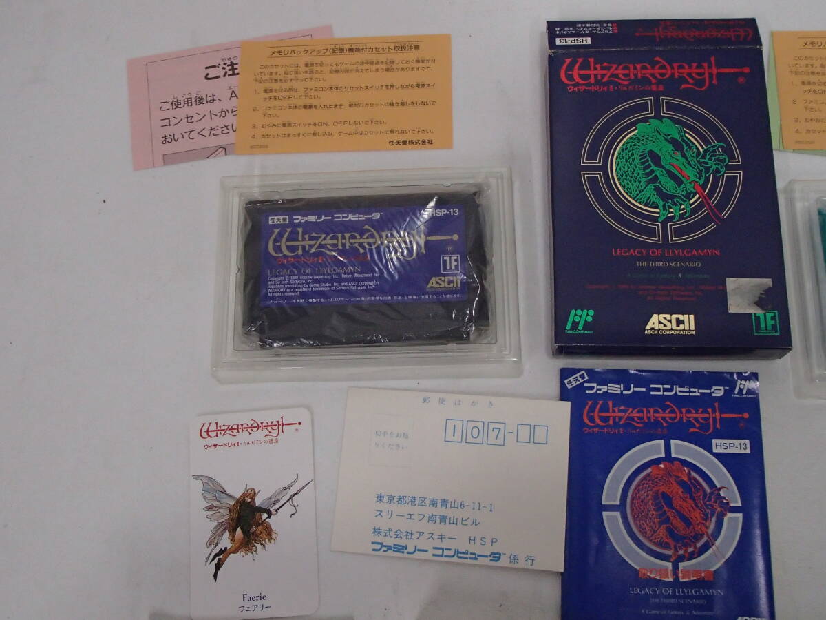| ★商品説明★ | 注意】商品説明欄を最後までよくご覧いただき、ご納得頂いてご入札頂けますようよろしくお願いいたします。【注意】 ファミコンソフト4本まとめ売りです。 ソフトの内訳は写真にてご確認ください。いずれも説明書や箱等写真に写っている物は全て付属します。 いずれも当方手持ちの環境で起動確認済みです。短時間での確認ですが問題なくプレイできました。 FF3とウィザードリィはデータが残っていました。 商品の状態は、いずれの外箱は保管時に付いた汚れは若干ありますが、目立つほどの傷や破損や欠損はありません。耳破れもありません。 説明書も特に目立つ破損等ありません。ざっと見たところ書き込みもありません。 ソフト本体も特に目立つダメージはありません。 主観ですが、いずれも古いわりには美品かと思います。 その他の状態は写真にてご確認ください。 個別販売はいたしかねます。 どうぞよろしくお願いいたします。 | |