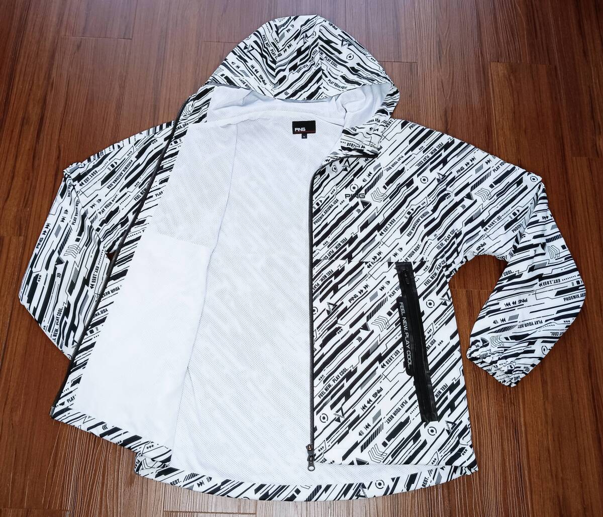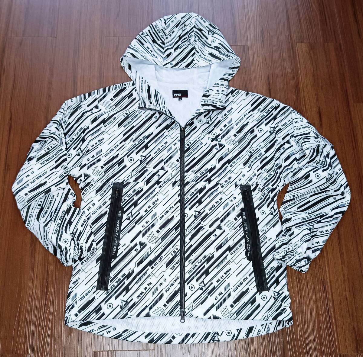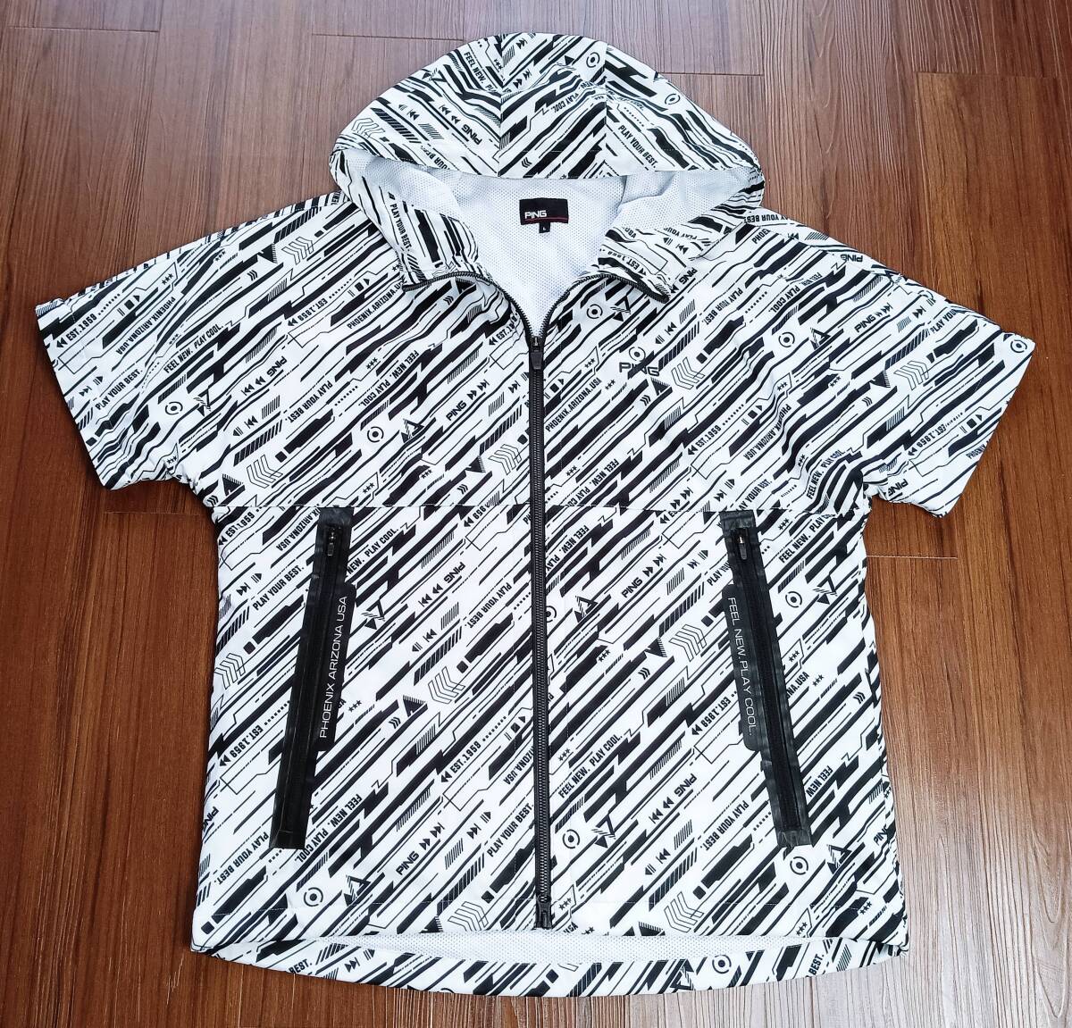 「PING」のロゴが総柄でデザインされた「長袖&半袖=2WAYジャケット」になります。