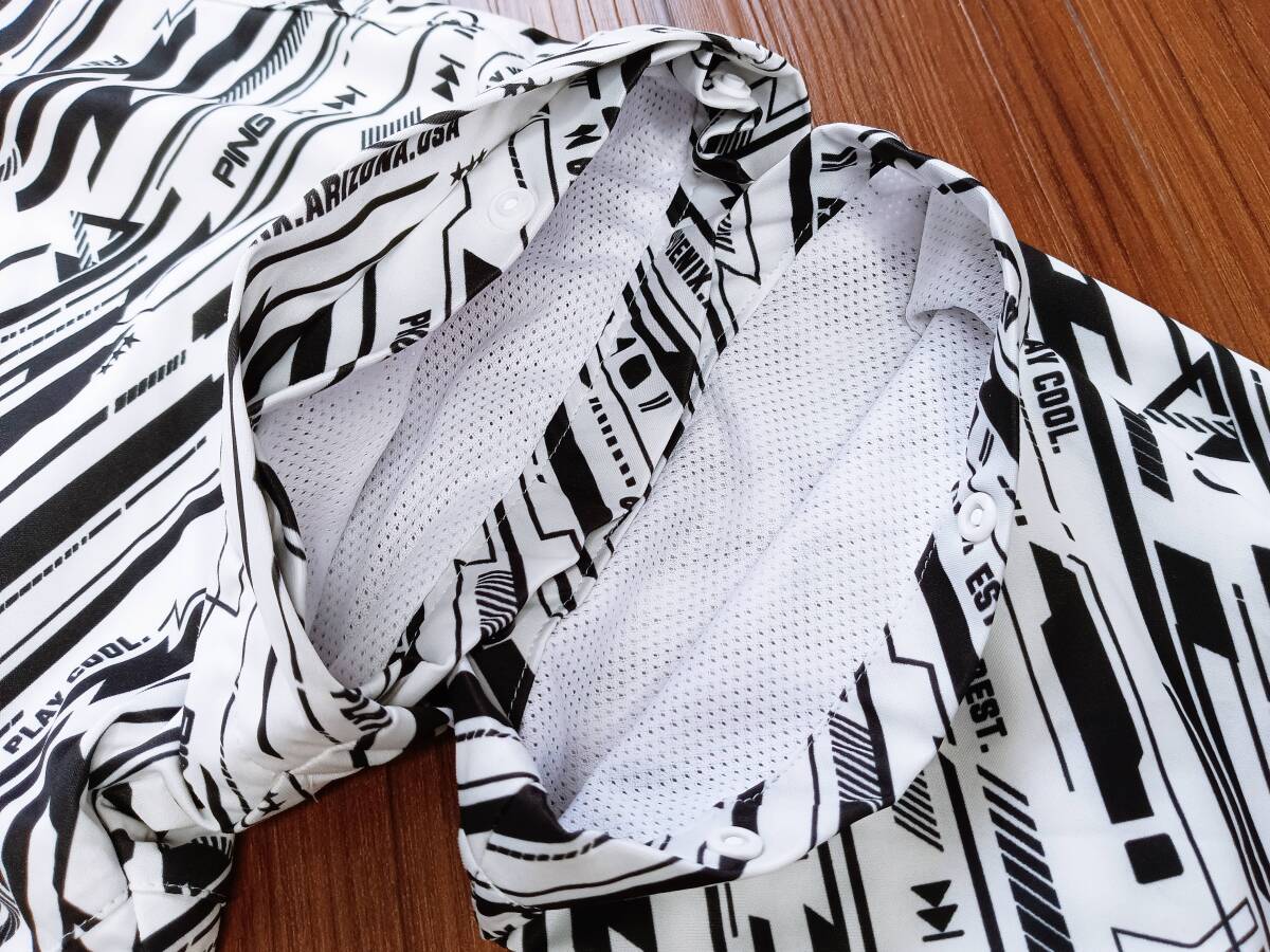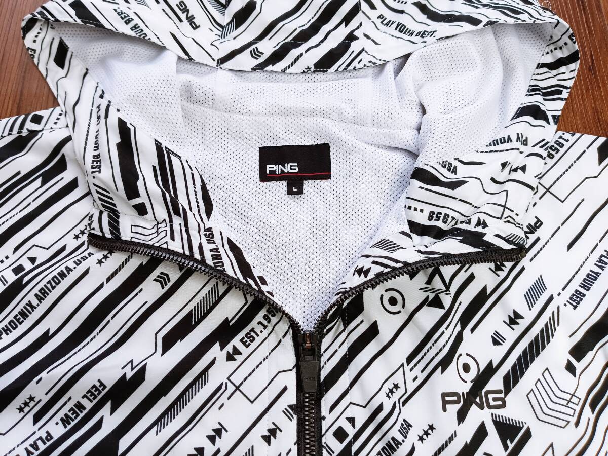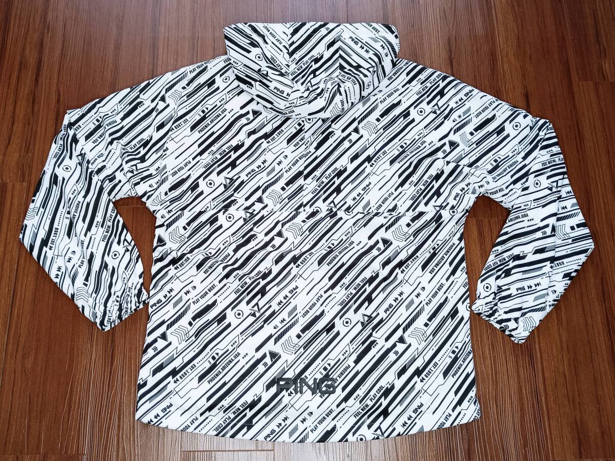 「美品!大きめサイズ!PING ピン 長袖&半袖 2WAY切り替え バリアンストレッチ 総ロゴ 撥水 防風 防寒ジップアップジャケット(白×黒XL相当)」