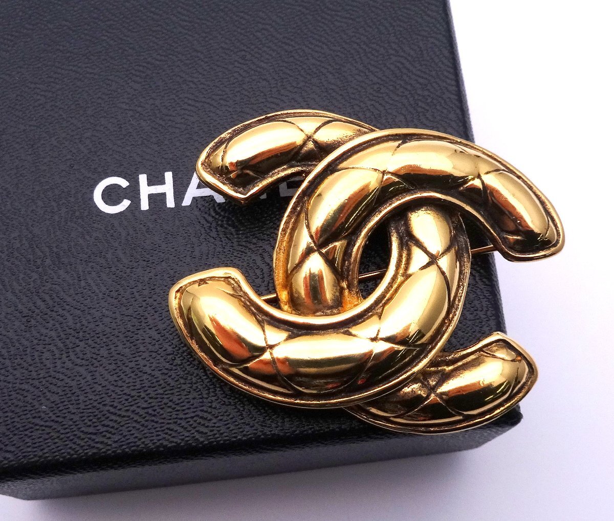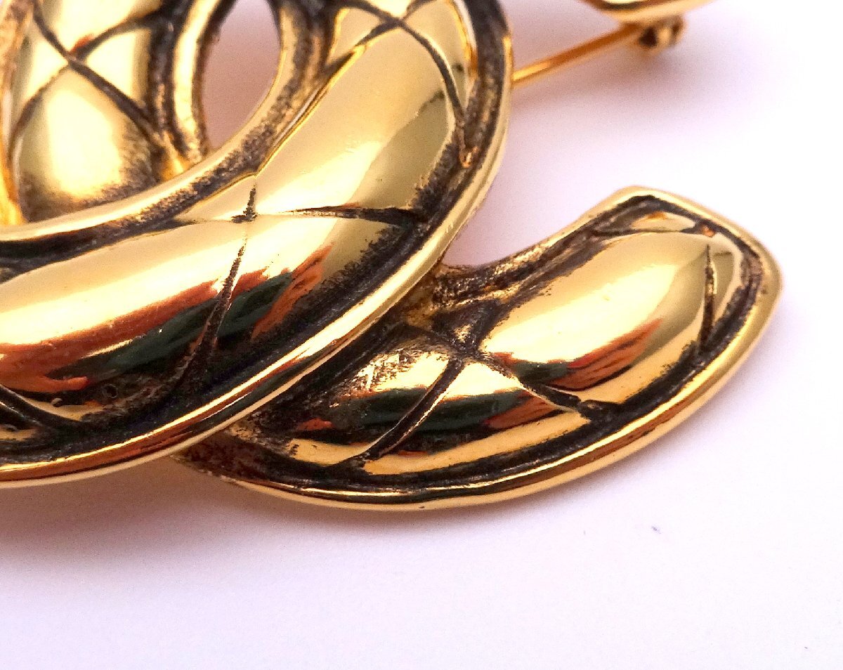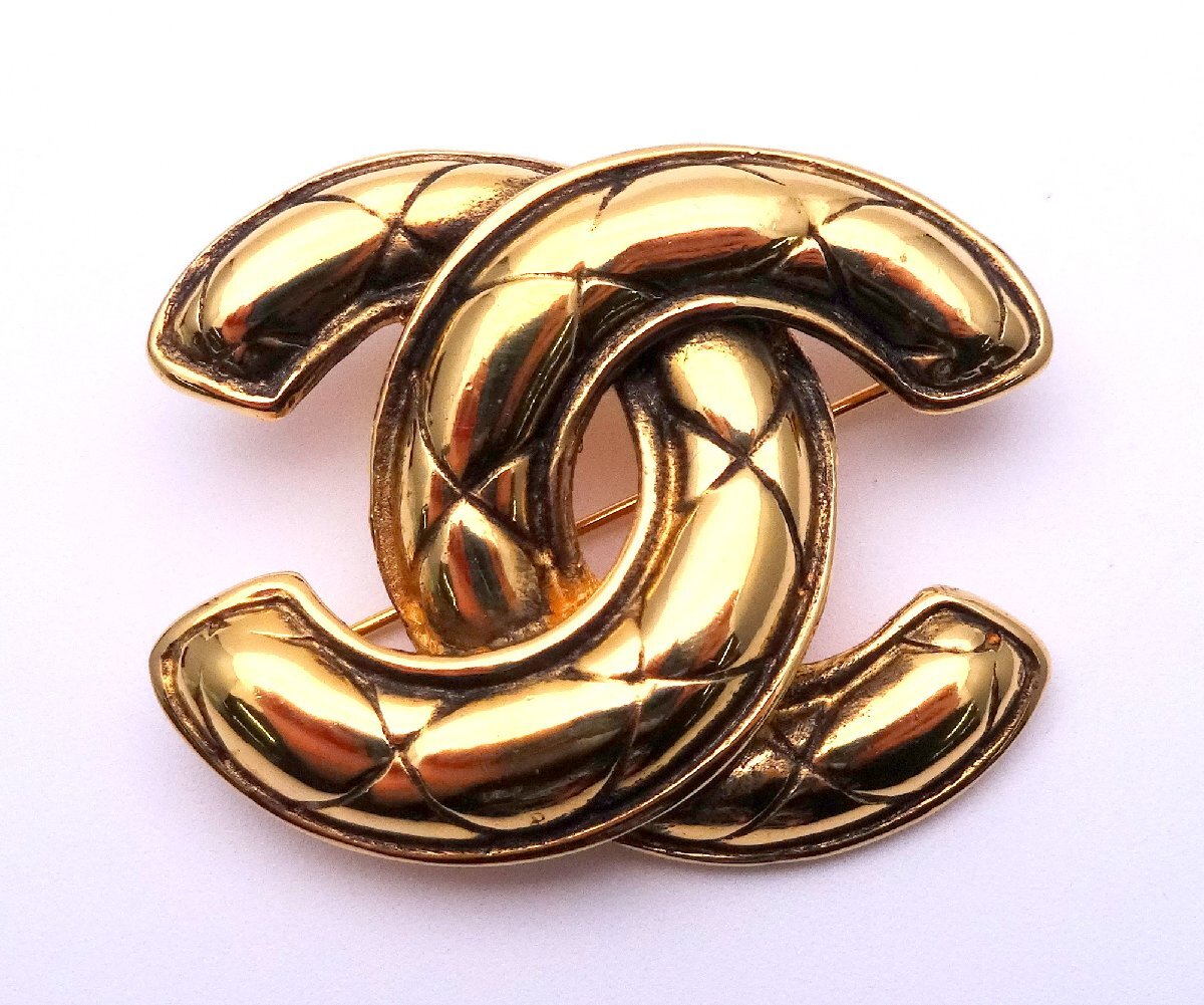 CHANEL シャネル マトラッセ ココマーク ロゴ ブローチ ゴールドカラー バッジ アクセサリー 装飾品 ブランド 箱付 1円~ T0502