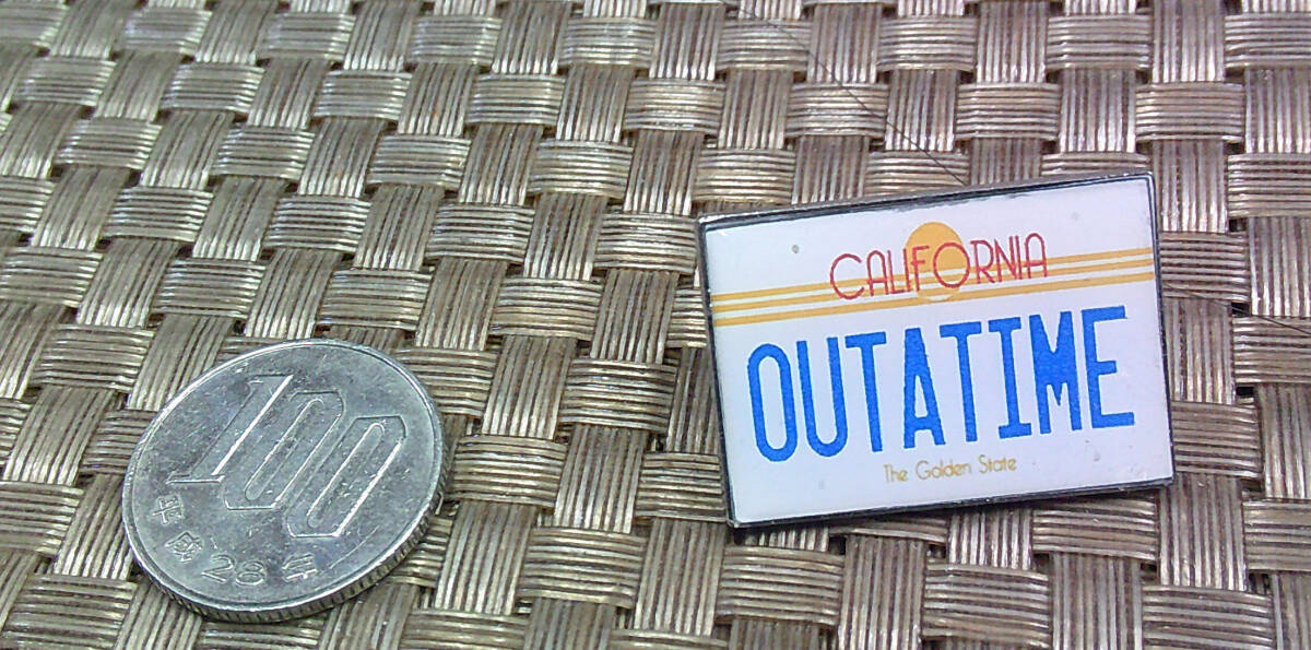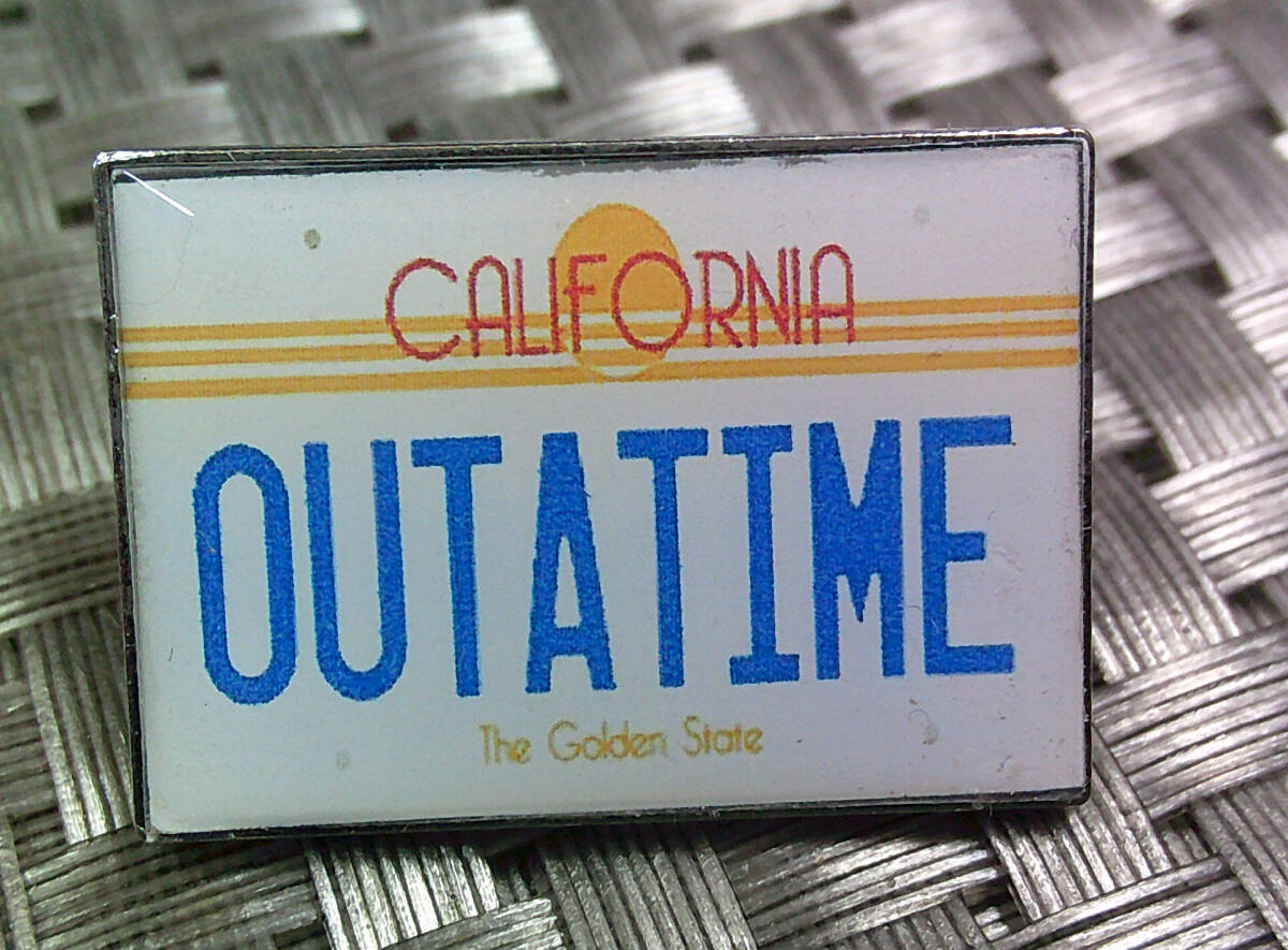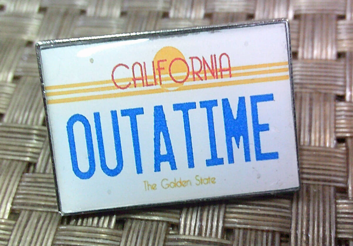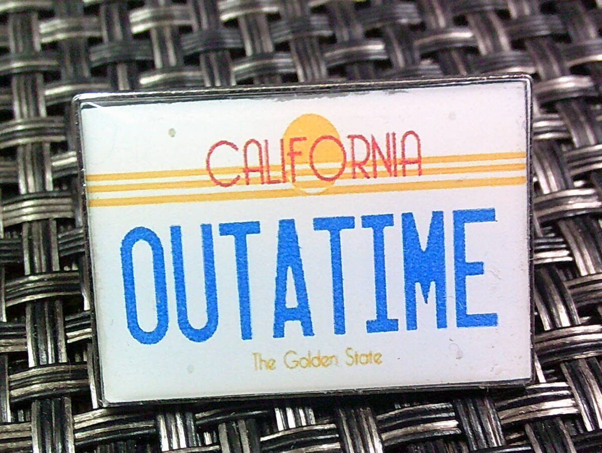 《白車プレート風OUTA TIME》未来『BACK TO THE FUTURE』バック・トゥ・ザ・フューチャー■映画ムービー アメリカ■ 金属ピンバッジ バッチ