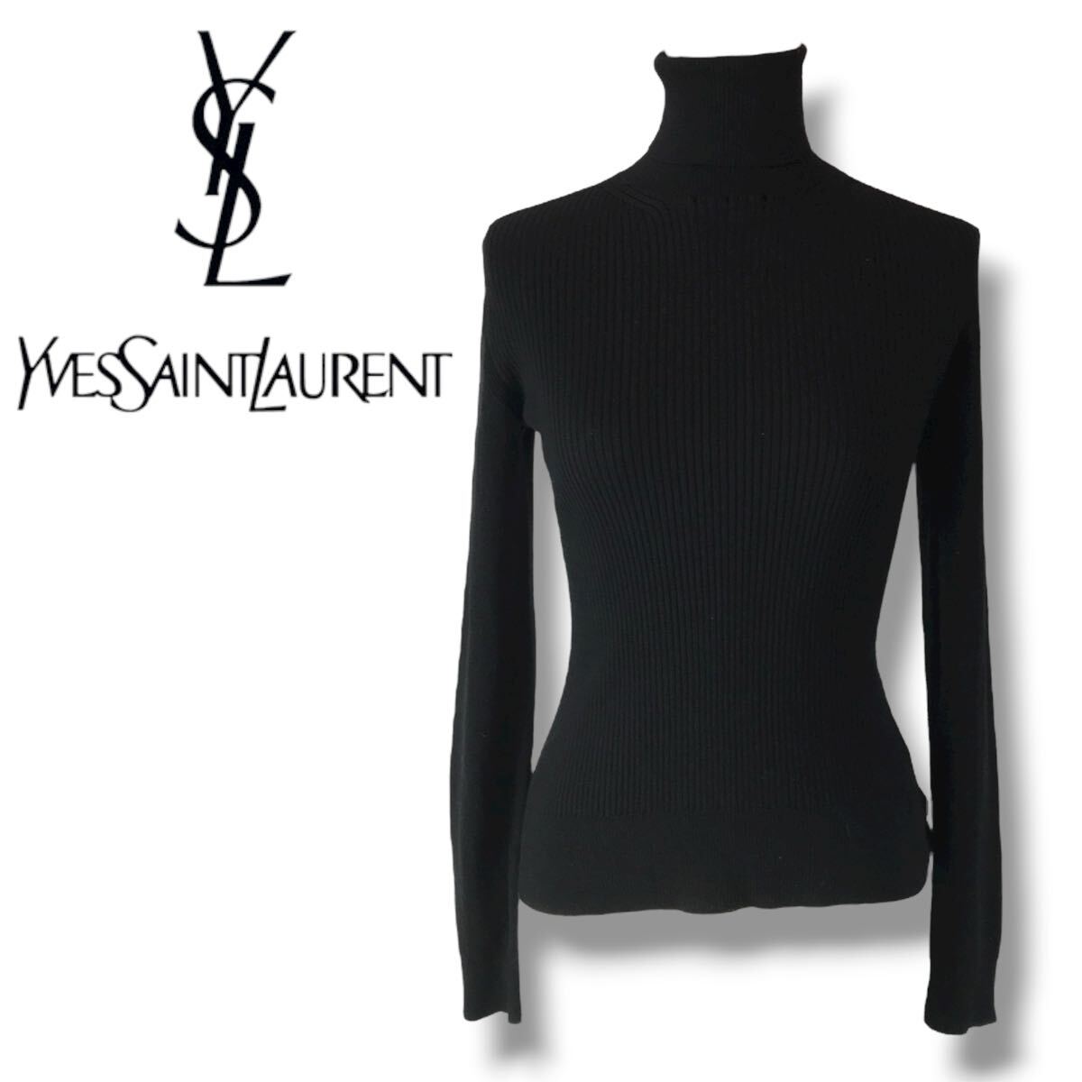 e27 Yves SAINT LAURENT イヴサンローラン タートルネック ニット トップス ハイネック セーター XS ブラック Vintage ウール 100% 正規品