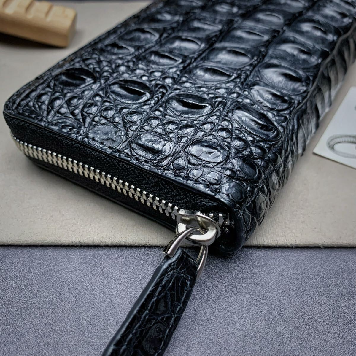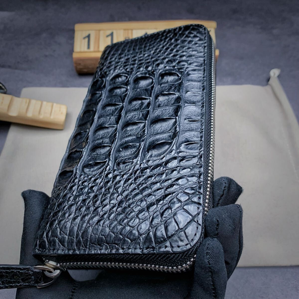 昔は「腹ワニ」レザーばかりが使用されてきましたが、近年ではイカツクごつごつした「背ワニ」人気になり、ワイルドで幅広い年齢層に好かれています。