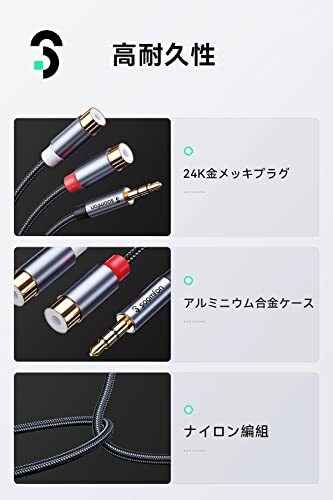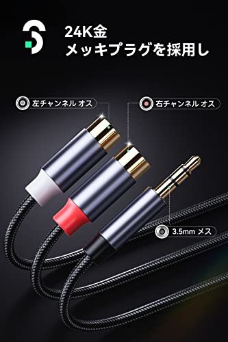 【HiFi音質再生】3.5mm(オス)to 2RCA(メス) 変換ケーブルは2重シールドと研磨済コネクタそして耐腐食性の高い金メッキ3.5mmコネクターで信号のロスを抑え、クリアなサウンドを実現。注:3.5mmオス側は3極(TRS)です。