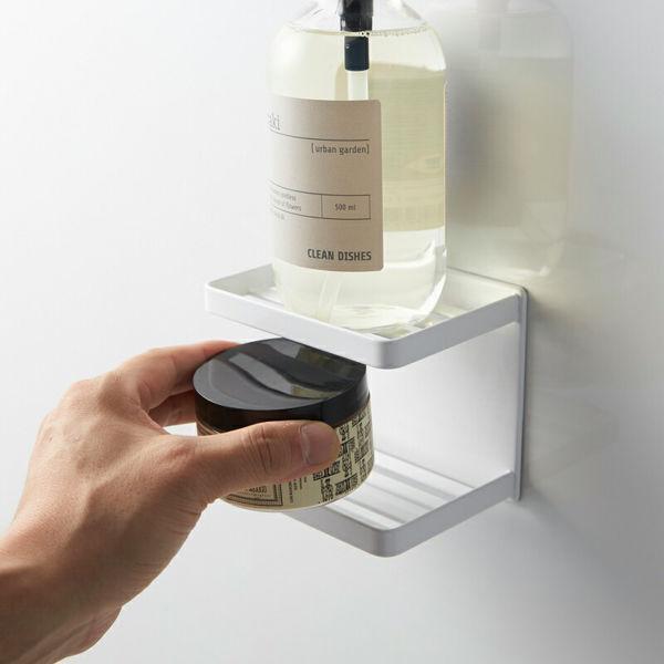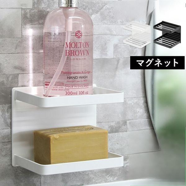 磁石強力吸着 免打孔 2 段タワー式 バスルームソープトレー 樹脂製耐湿耐用 水切れ良好 石鹸置き ハンドソープ小物収納 白黒 2 色選択可 風呂 洗面所 お手入れ簡単