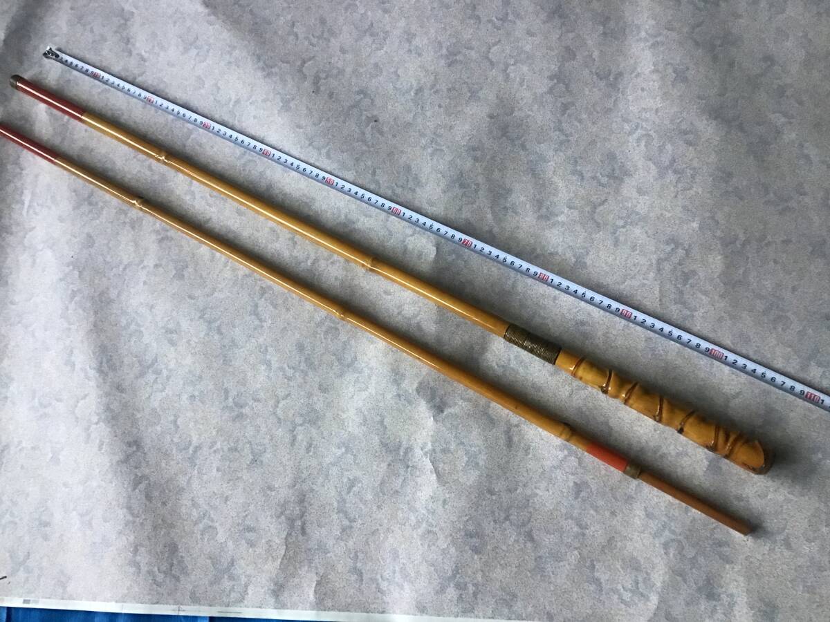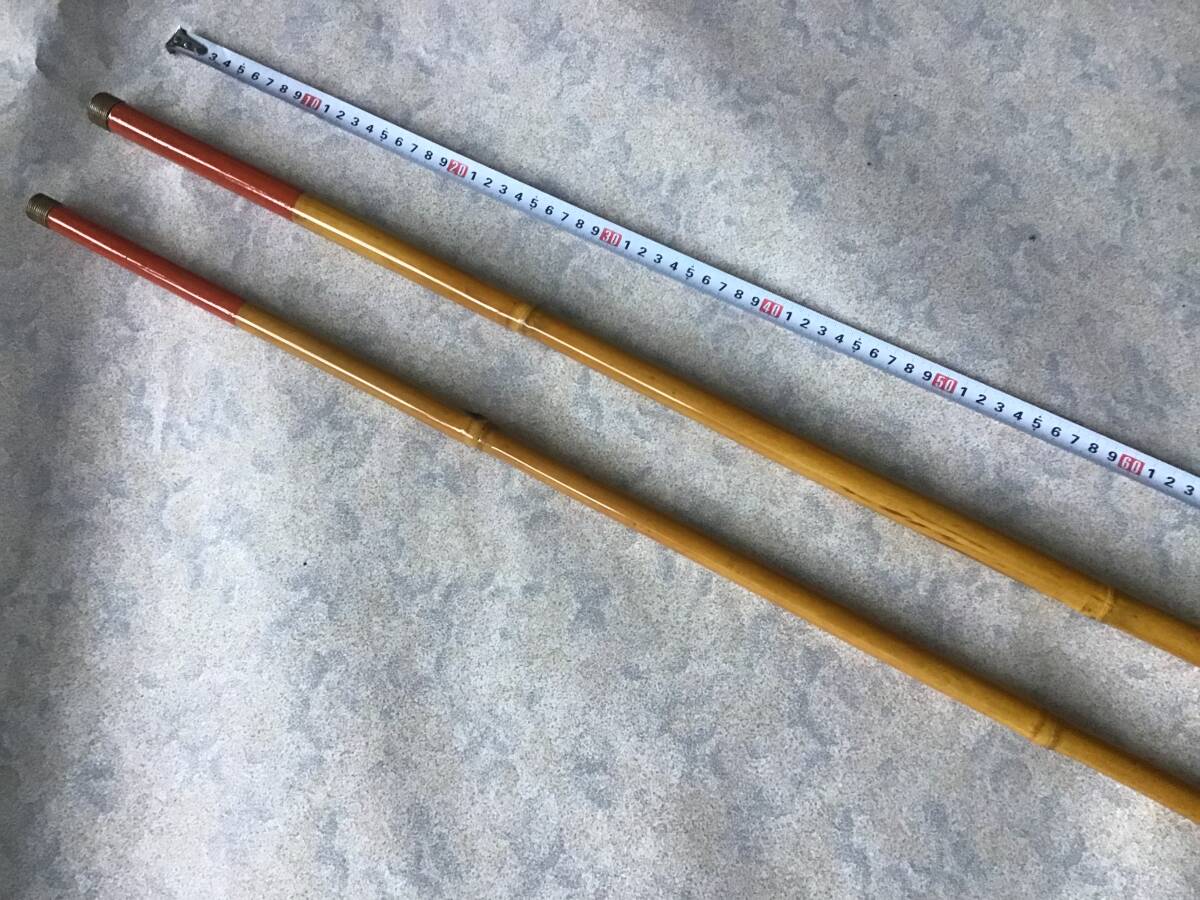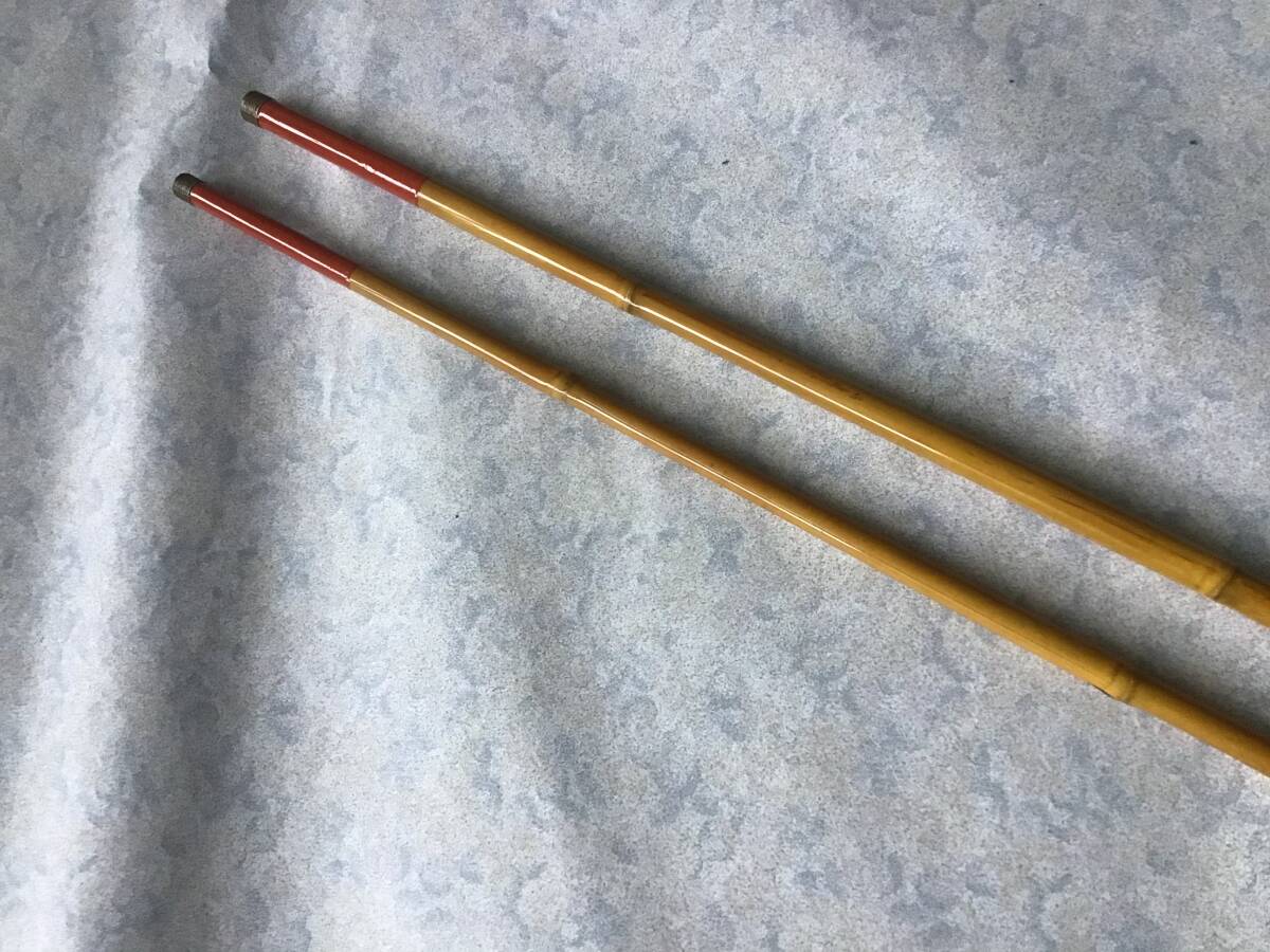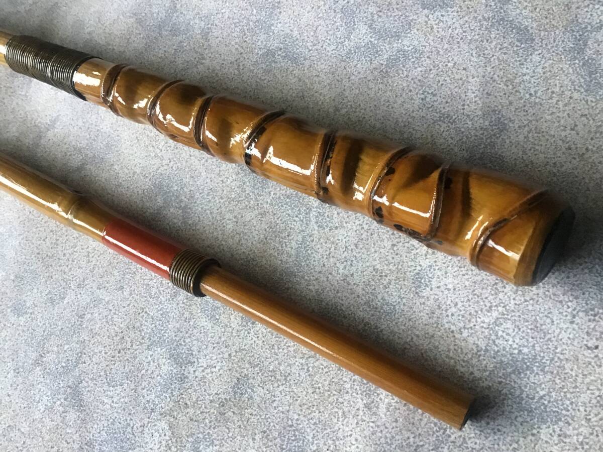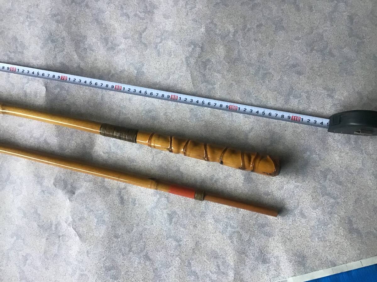 本体一本もので使用出来ます。上質の太い矢竹で先端外径20ミリ内径13ミリ手元22ミリで布袋竹握りとなっております。非常に頑丈につくってございます。継ぎの細い方は先端外径15ミリ内径12ミリ手元は17ミリ。継ぎ合わせると2メートリ10センチとなります。