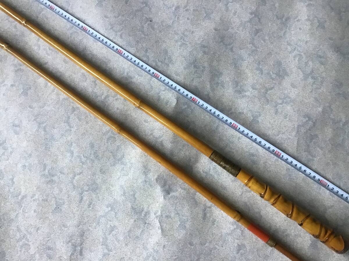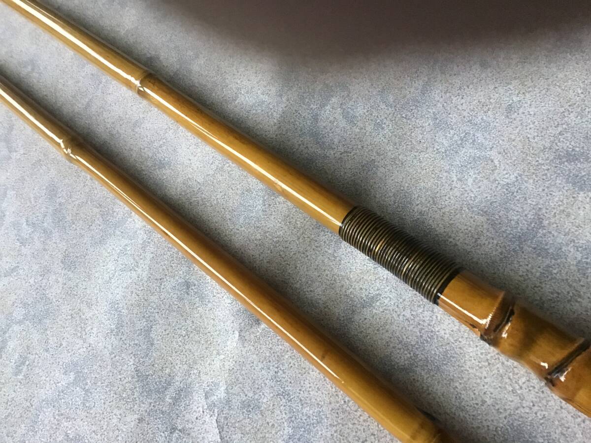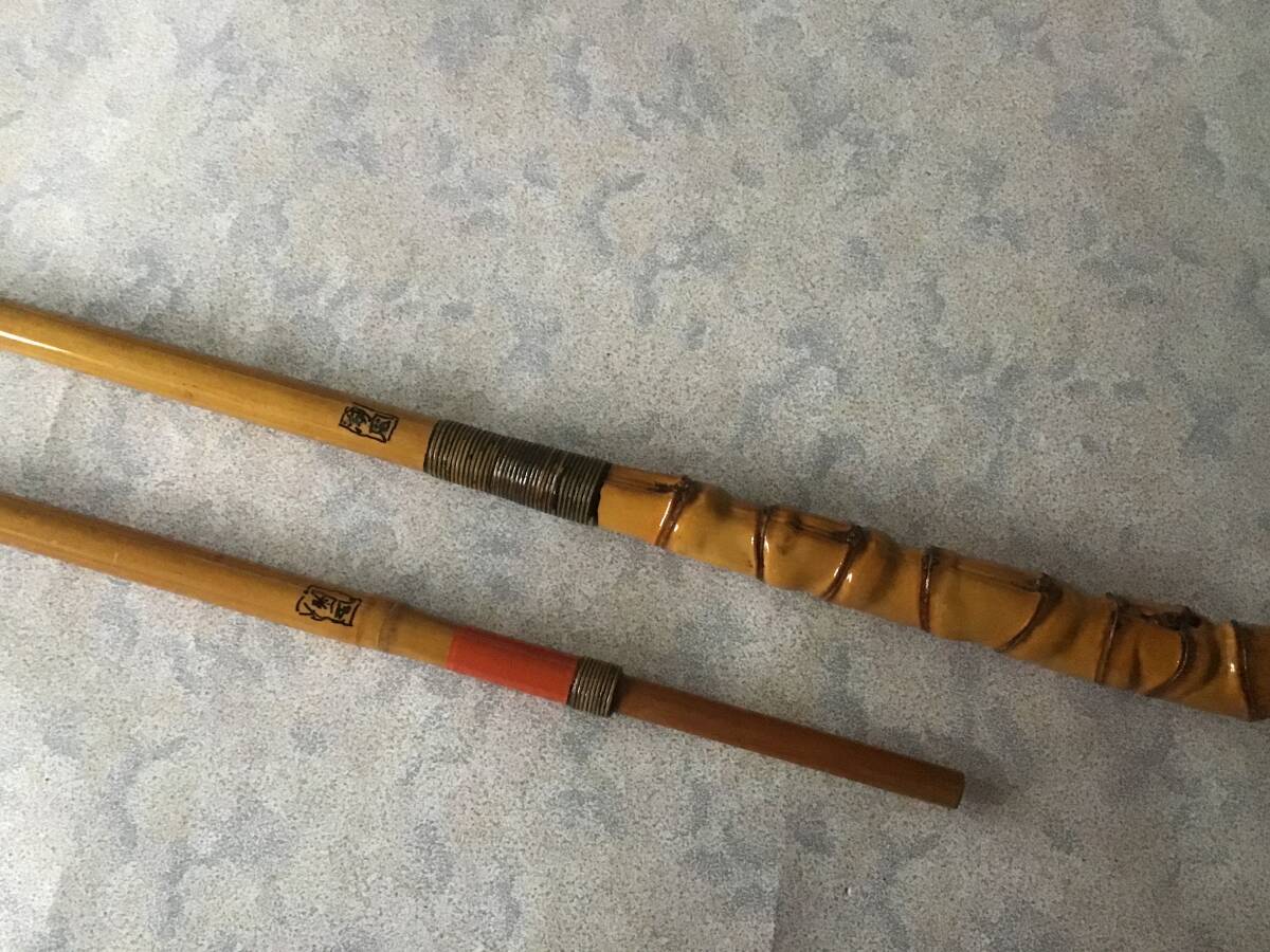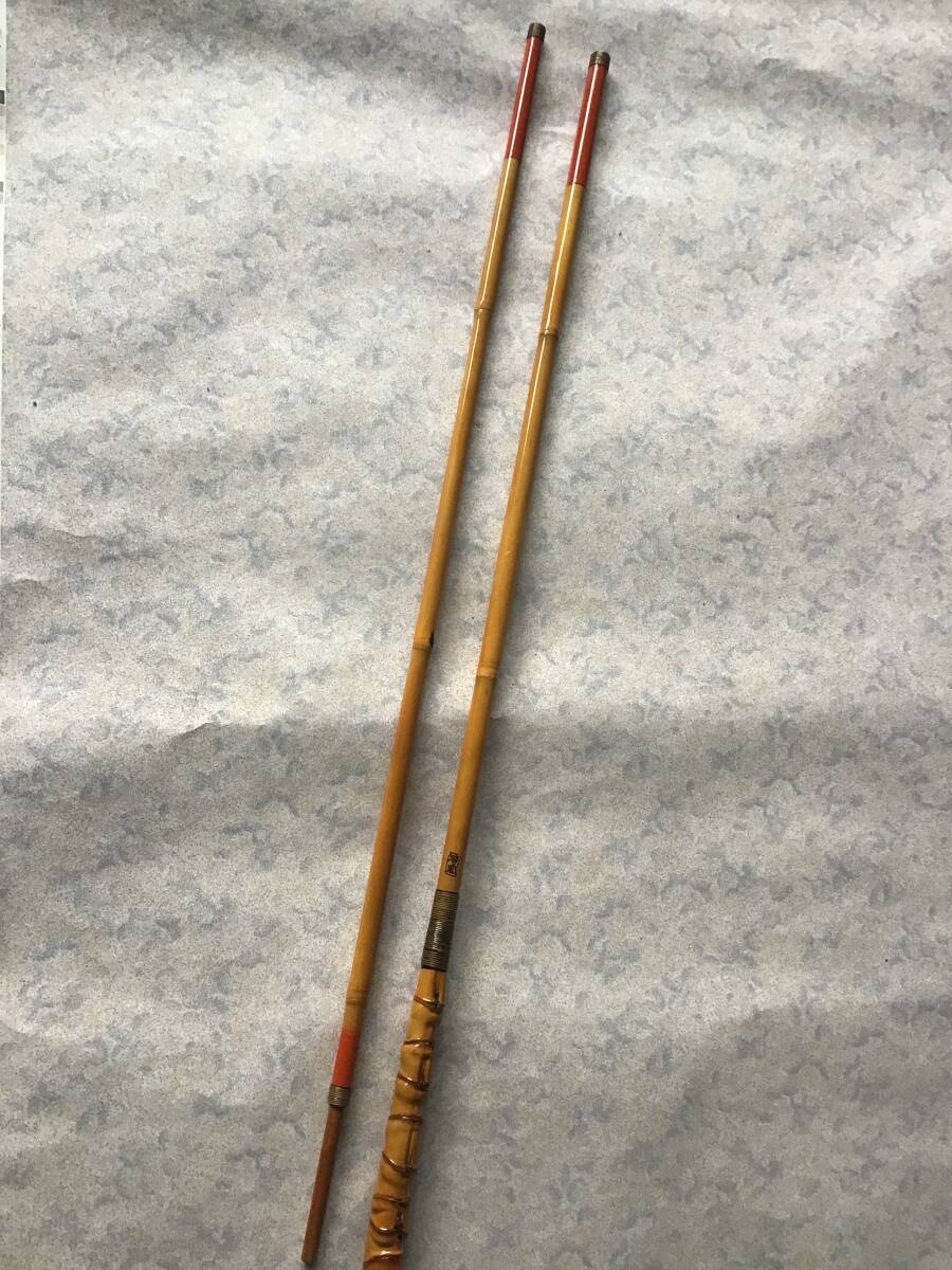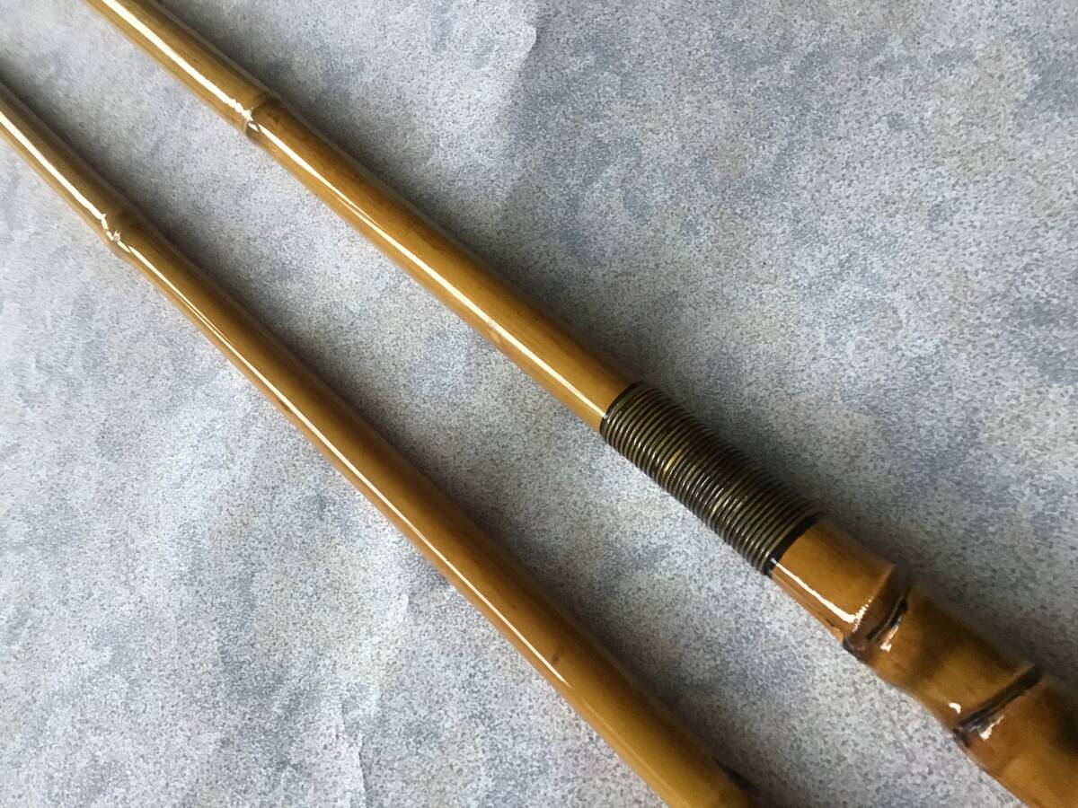 本体一本もので使用出来ます。上質の太い矢竹で先端外径20ミリ内径13ミリ手元22ミリで布袋竹握りとなっております。非常に頑丈につくってございます。継ぎの細い方は先端外径15ミリ内径12ミリ手元は17ミリ。継ぎ合わせると2メートリ10センチとなります。