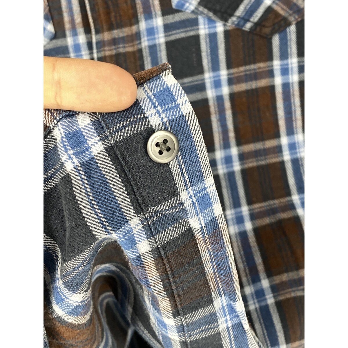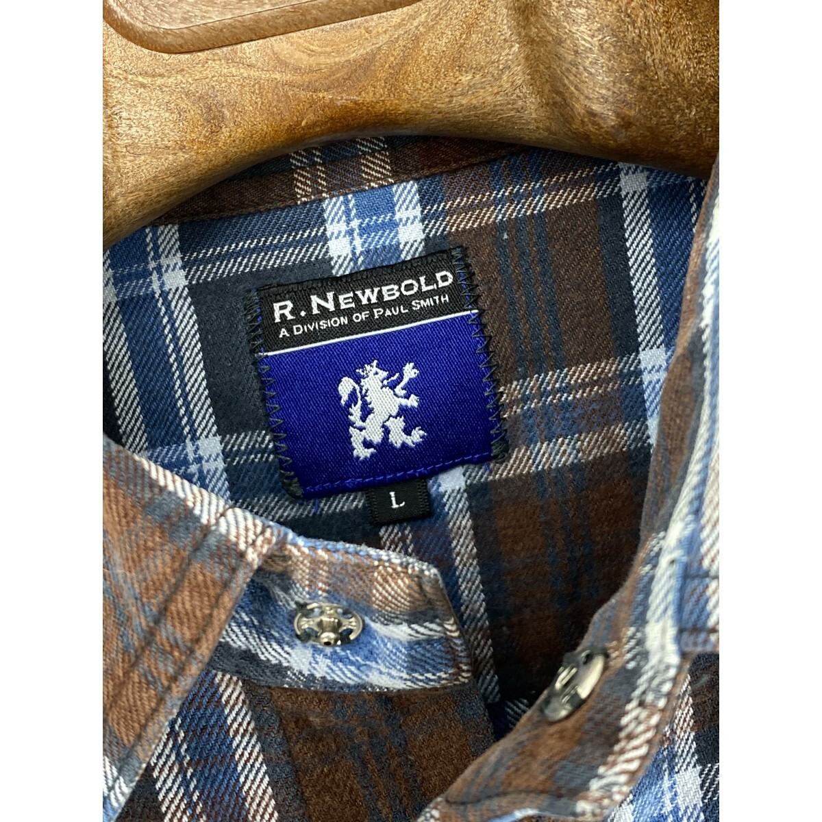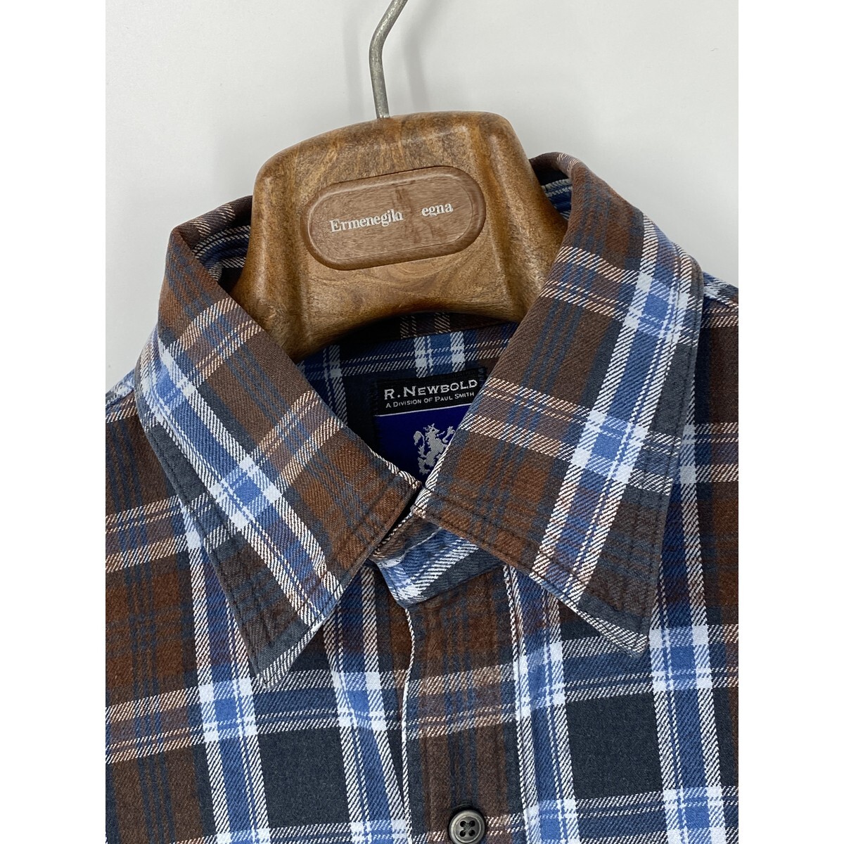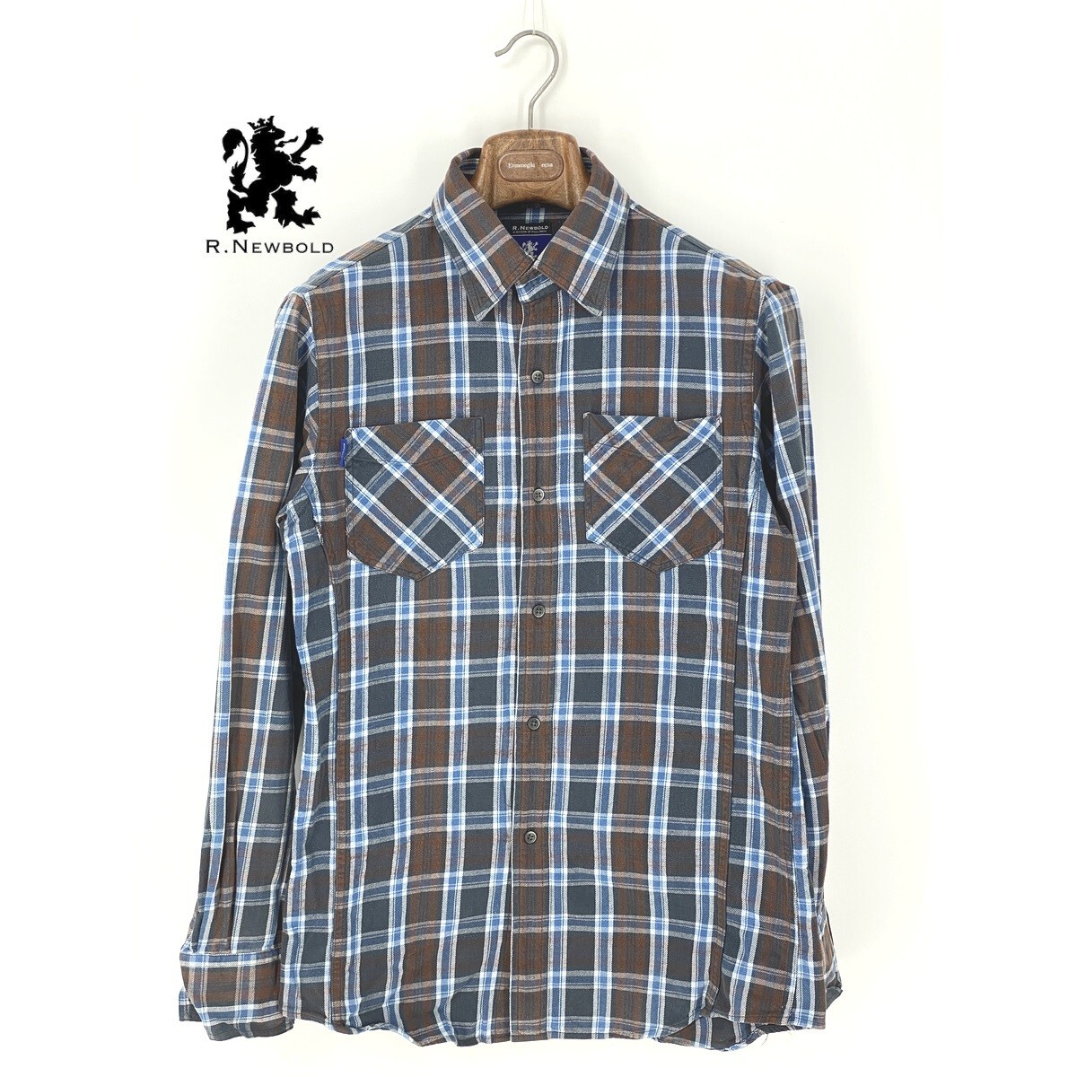 A8369/極美品 春夏 R.NEWBOLD アール・ニューボールド コットン チェック 長袖 ウエスタン ワーク シャツ L 青 茶/メンズ Paul Smith