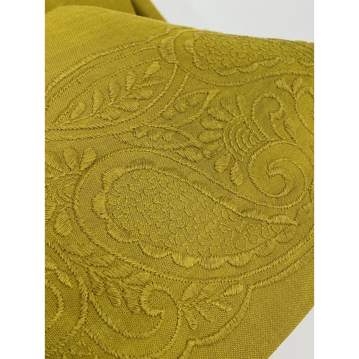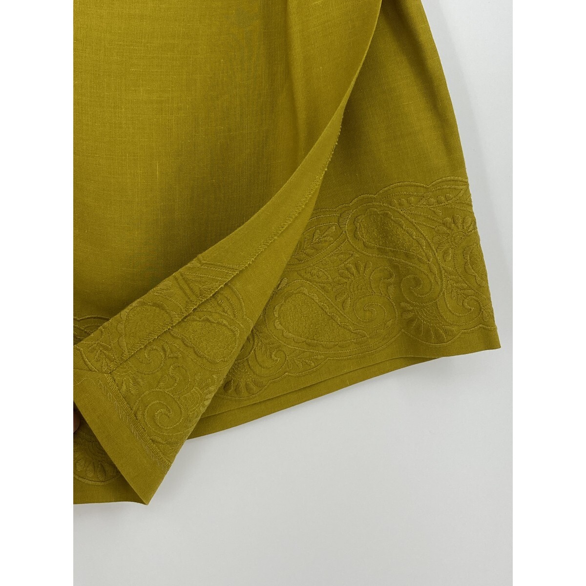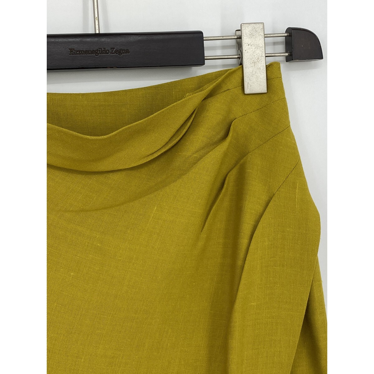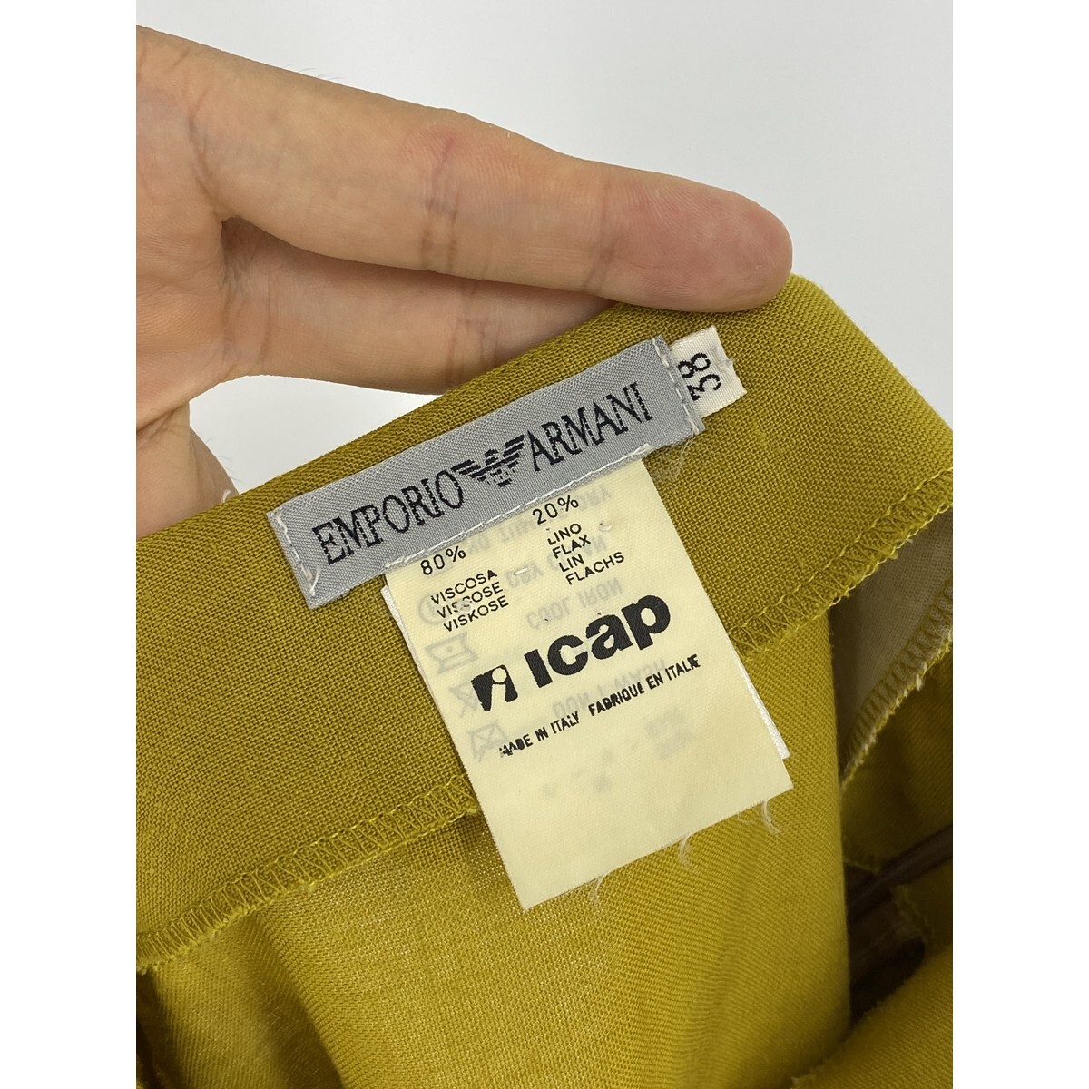 B0817/極美品 EMPORIO ARMANI エンポリオアルマーニ リネン 花刺繍 ボタニカル 変形 ギャザー 膝丈 巻きスカート風 38 M程 黄色 レディース