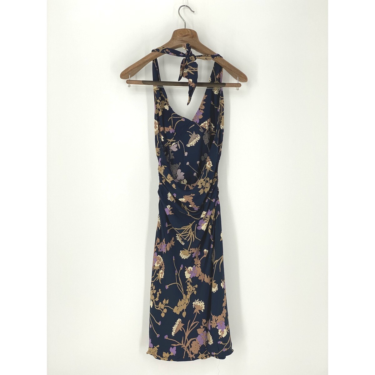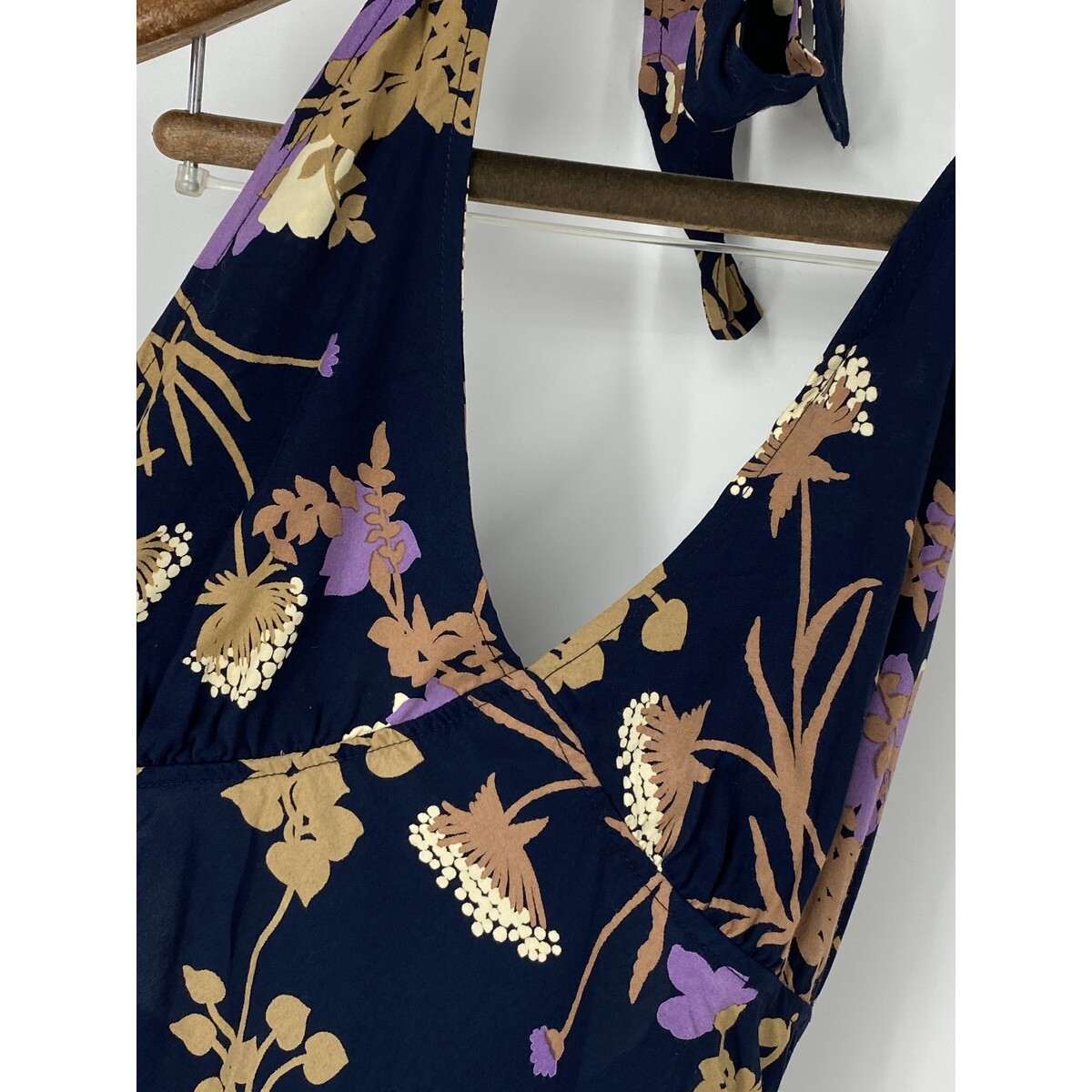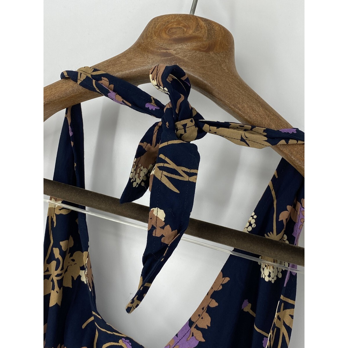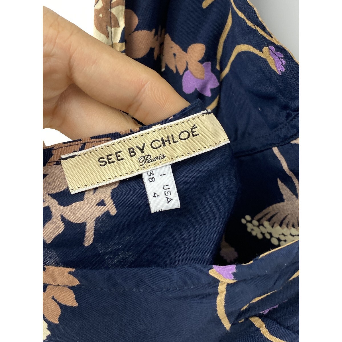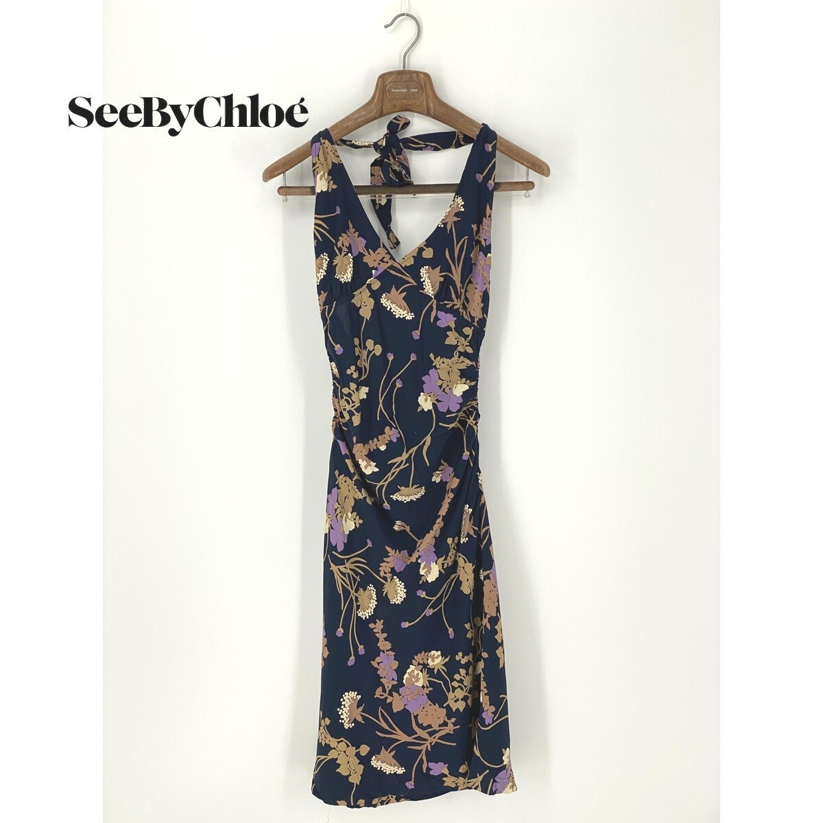 A8279/美品 春夏 SEE BY CHLOE シーバイクロエ ビスコース 花柄 ホルターネック ノースリーブ ミモレ丈 ワンピース 38 S程 紺/レディース