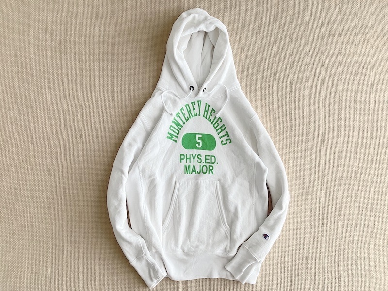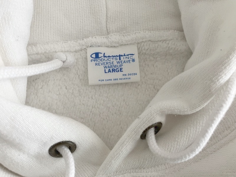 即決 復刻 青タグ Lサイズ Champion REVERSE WEAVE プルオーバー パーカー 白 MONTEREY HEIGHTS カプセル モントレー 4段染み込み