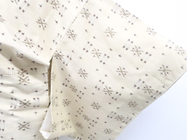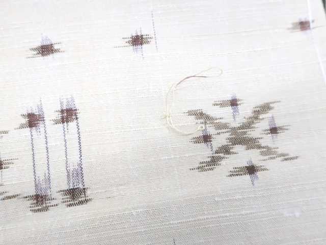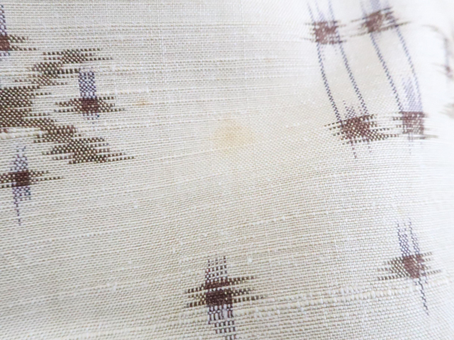 汚れ:下前衽に糸飛び出し、上下前身頃、両袖、後身頃、衿裏胴裏の所々にシミがございますが、着用可能です。