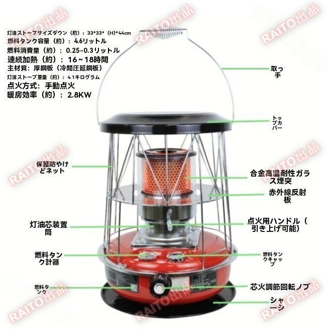 • 【対流型石油ストーブ】石油炉は360°で熱風を放出し、暖房効果が高く、部屋全体を快適に保ちます。