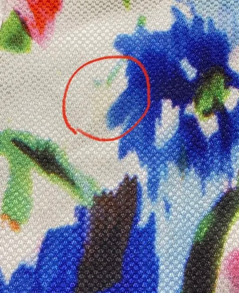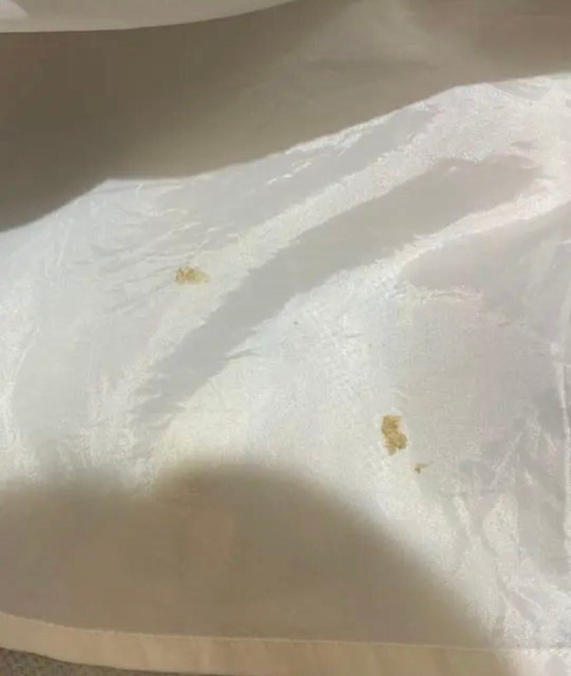 表面に薄ら黄色っぽく見える箇所と、裏地に汚れが2か所ございます。