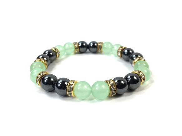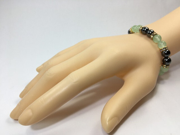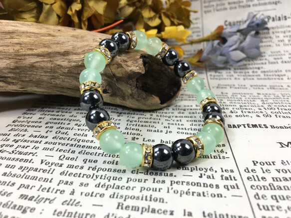 ジェイド(ライトグリーン)×ヘマタイト パワーストーン ブレスレット(ゴールド)レディース 女性 開運 数珠 お守りプレゼント ギフト