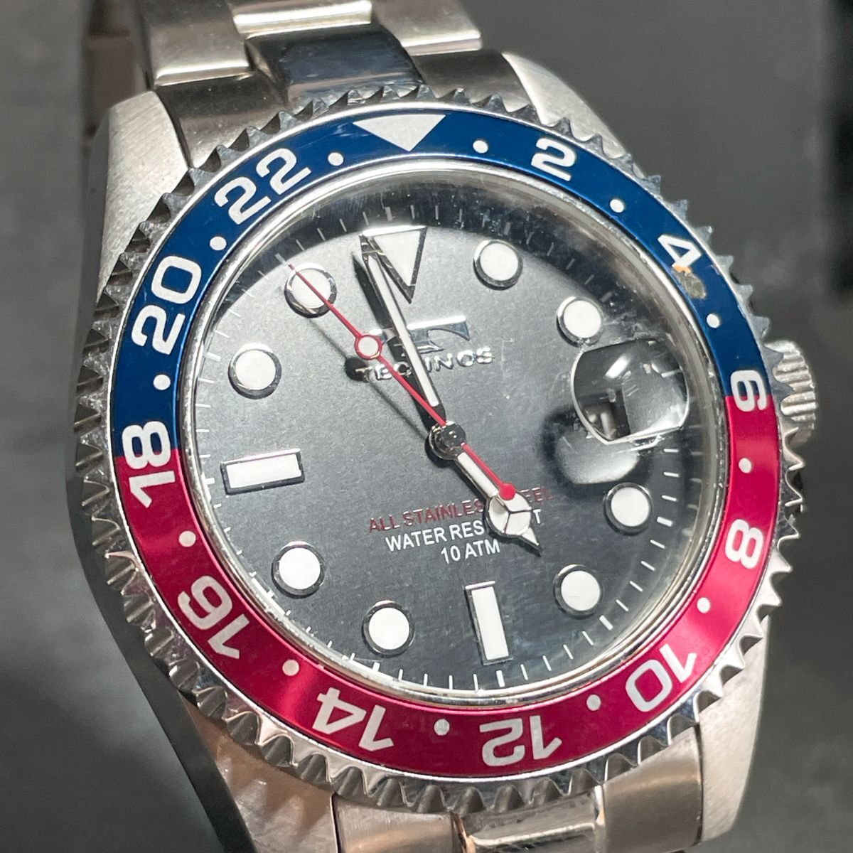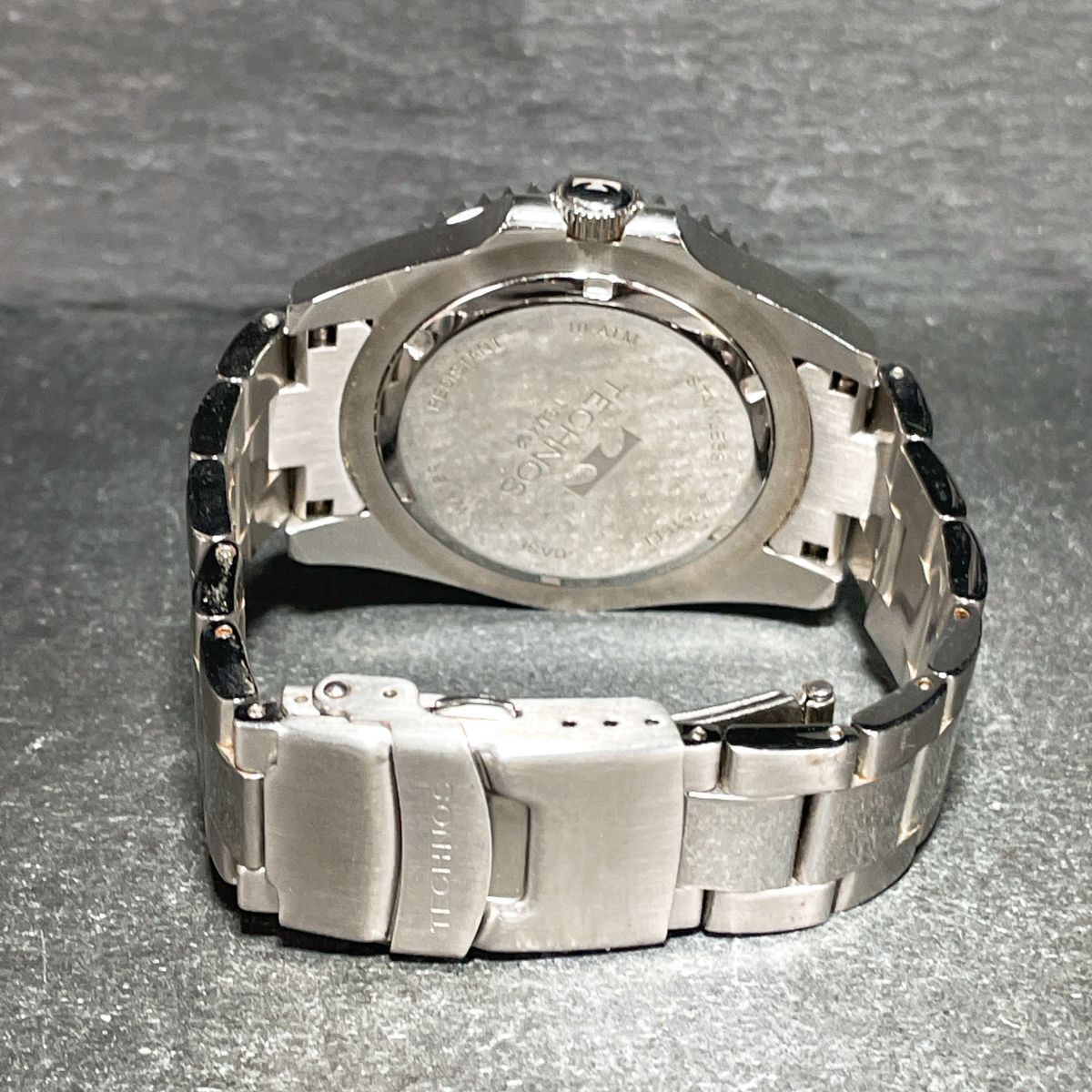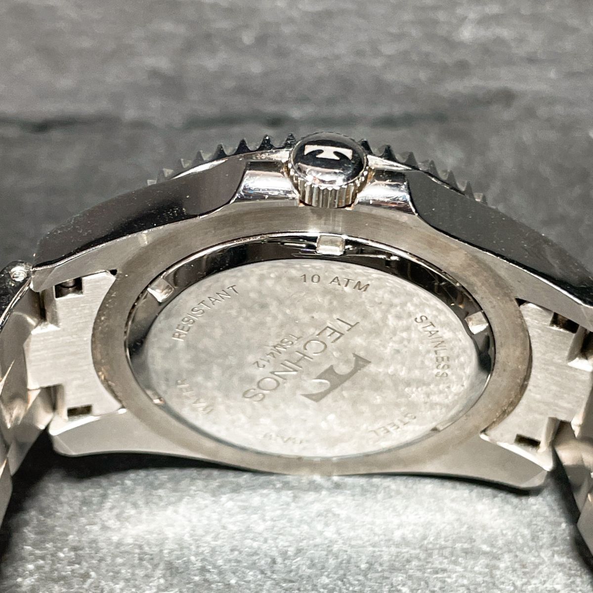 美品 TECHNOS テクノス TSM412 腕時計 アナログ クオーツ 3針 カレンダー ブラック文字盤 メタルバンド シルバー ラウンド 動作確認済み