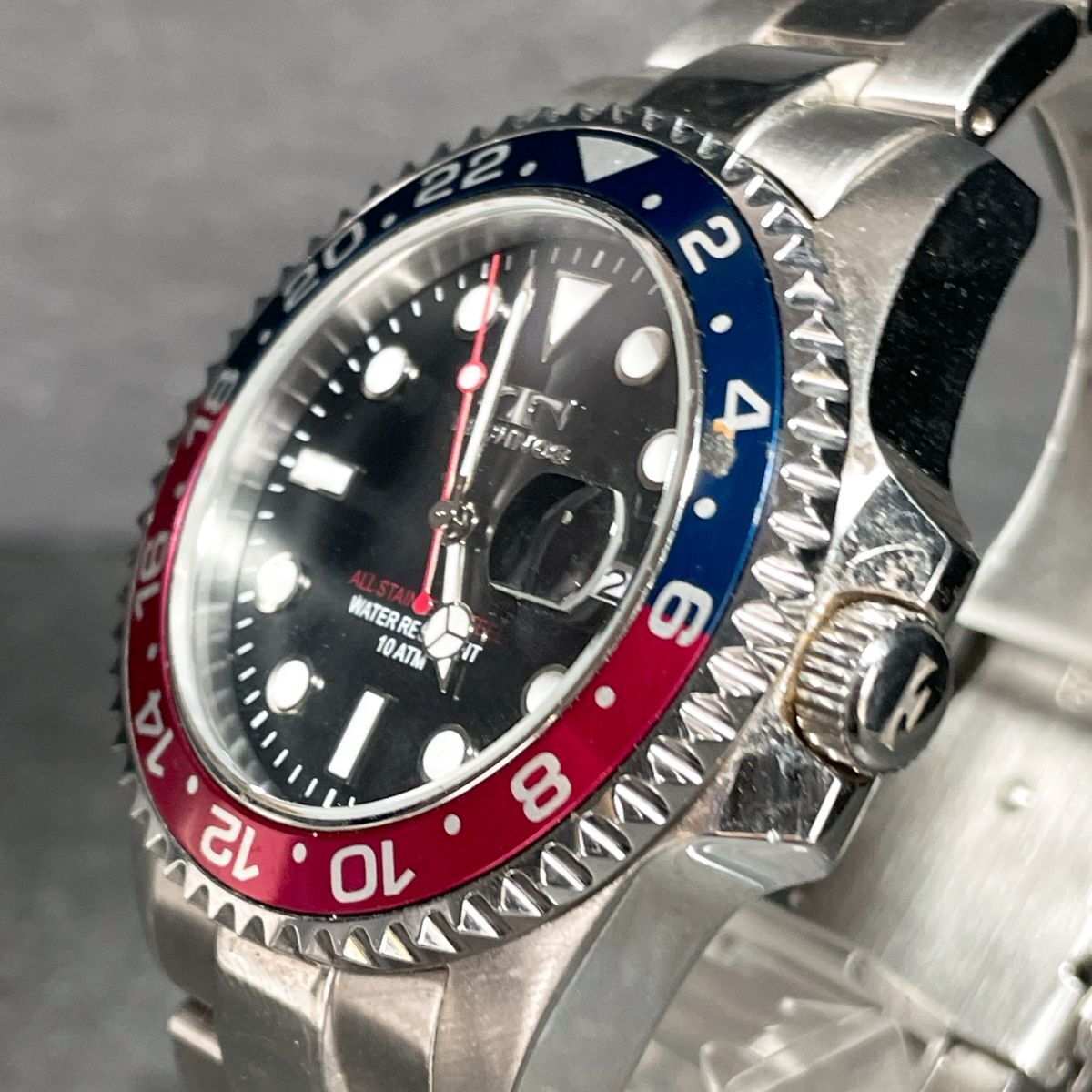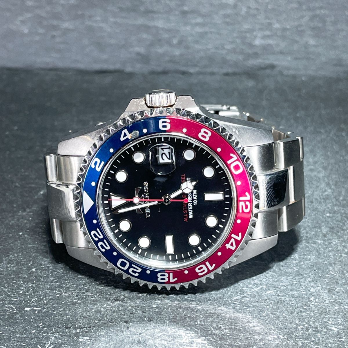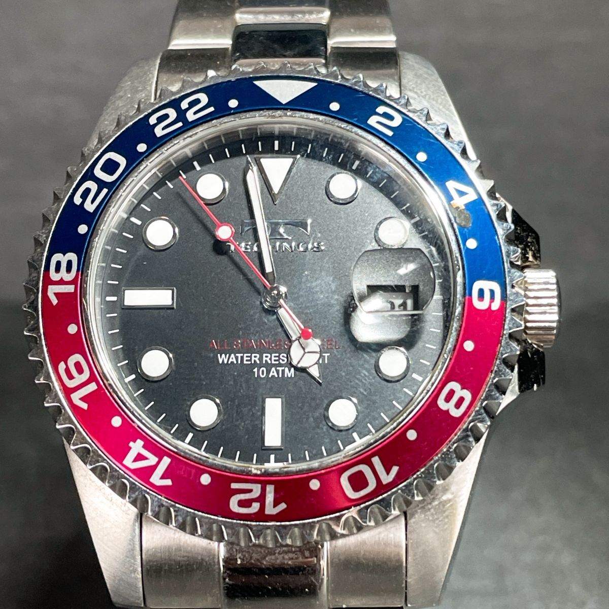 美品 TECHNOS テクノス TSM412 腕時計 アナログ クオーツ 3針 カレンダー ブラック文字盤 メタルバンド シルバー ラウンド 動作確認済み