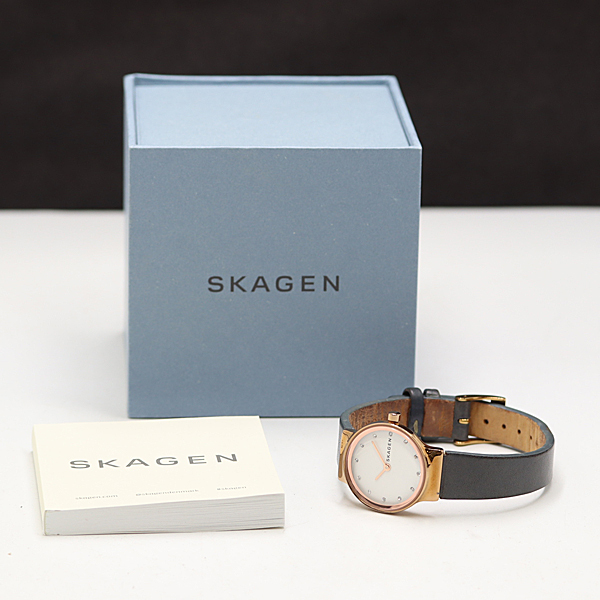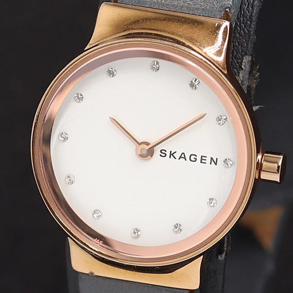 1円 稼働 箱付 スカーゲン SKW2669 QZ ホワイト文字盤 レディース腕時計 2853100 11ERY KMT
