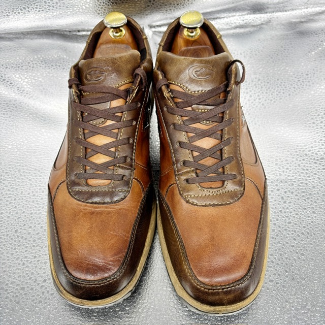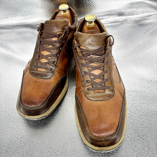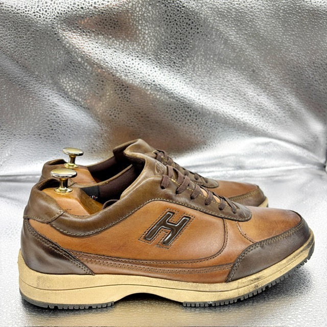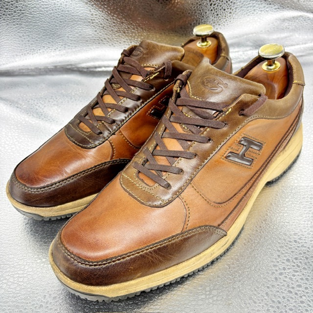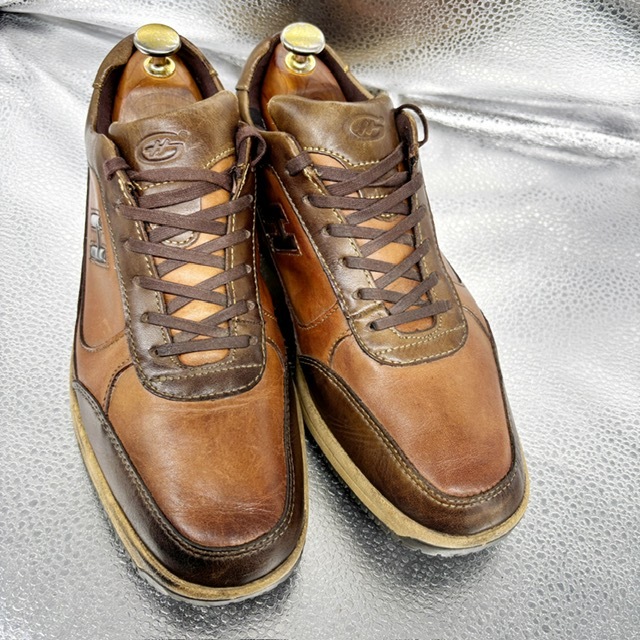 ご覧いただき、ありがとうございます。 オシャレで高級感のあるホーキンス トラベラーのスニーカーです。 デザイン性:機能性共に定評のある商品です。 1足押さえてあるとファッションの幅も広がり大活躍するお勧めの商品です。 中古品のため、スレや傷、ヨゴレ等ありますが、その分お値打ちにしております。詳しい状態は画像でご確認ください。 商品のサイズについて 表記サイズ 25.0EEE アウトソール全長 約28.0cm 全幅 約9.3cm (素人採寸) ●状態①「外観」 履きジワ、着用に伴う擦れ、傷がございますが、着用に支障はございません。くわしくは画像で確認ください。 ●状態②「ソール・インナー」 インソール内残っています。 ●その他・付属等なし、シューズキーパーは撮影用です。 | |||