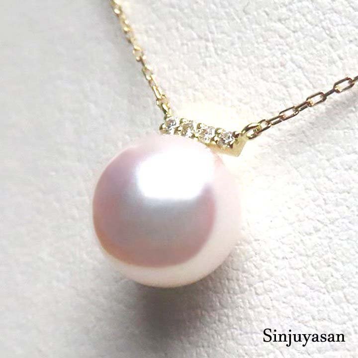 真珠屋さん 特選【花珠 ホワイトピンク】最高の色!8.3mm アコヤ真珠 ダイヤモンド D0.02ct K18ネックレス 18金 伊勢志摩産パール 新品