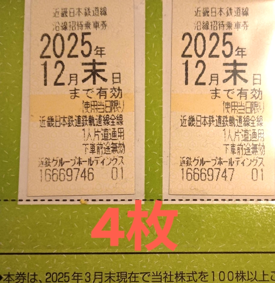 近鉄株主優待乗車券 4枚 沿線招待乗車券 近鉄電車 12末まで