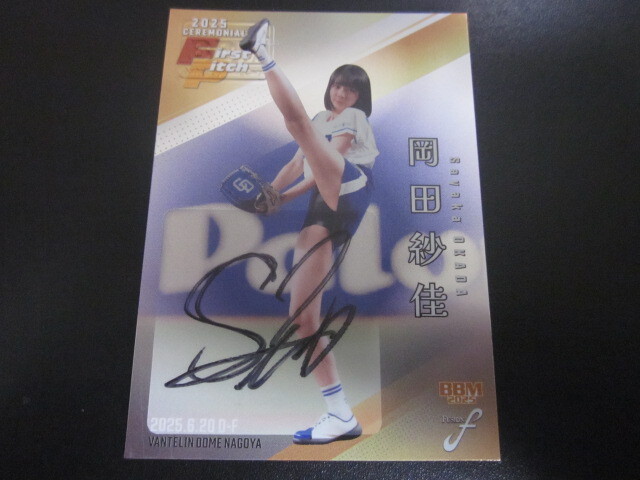 BBM 2025 FUSION ★ 岡田紗佳 ★ 始球式カード 銀紙版 直筆サイン 11/15 15枚限定 タレント プロ雀士 中日 VS 日本ハム