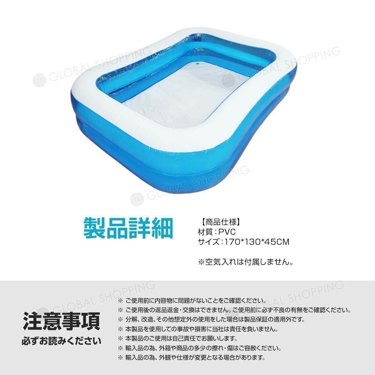 ビニールプール 家庭用プール ファミリープール 170cm×130cm×45cm プール 夏休み 庭 バルコニー 水泳 スイミング キッズプール 水遊び