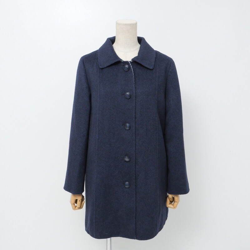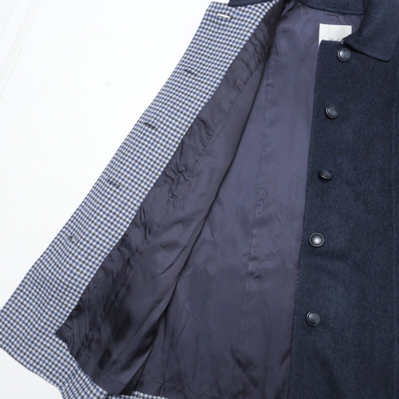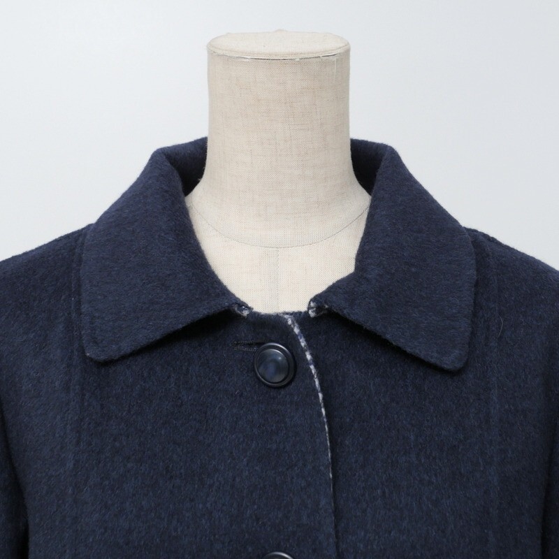 | TJ6840★Leilian レリアン カシミヤ100% ダブルフェイス/裏:チェック柄 ステンカラーコート バルマカーンコート ハーフ丈 ネイビー 9 | |||