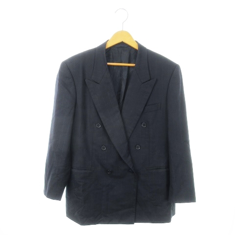 クリスチャンディオール Christian Dior MONSIEUR テーラードジャケット ダブル 総裏地 ウール ノーベント ストライプ AB4 紺