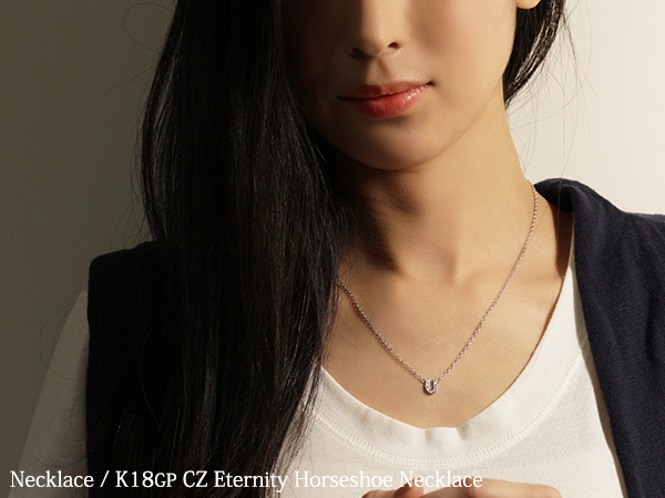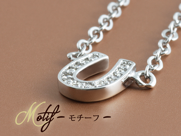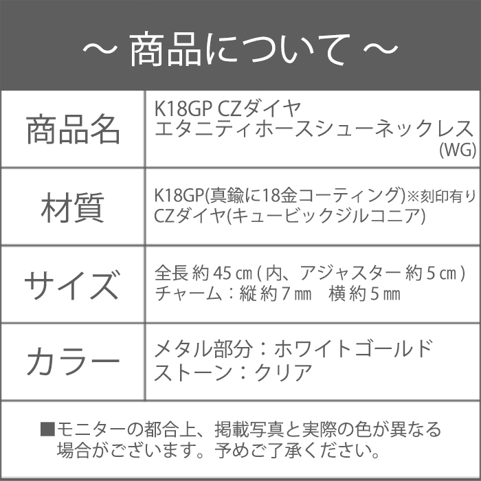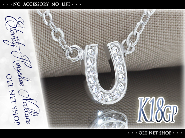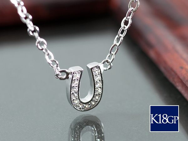 新品/ネックレス/K18GP/馬蹄/シルバー/ダイヤ/18金/レディース/ホワイトゴールド/ホースシュー/幸せ/幸運/お守り/シンプル/CZ/WG