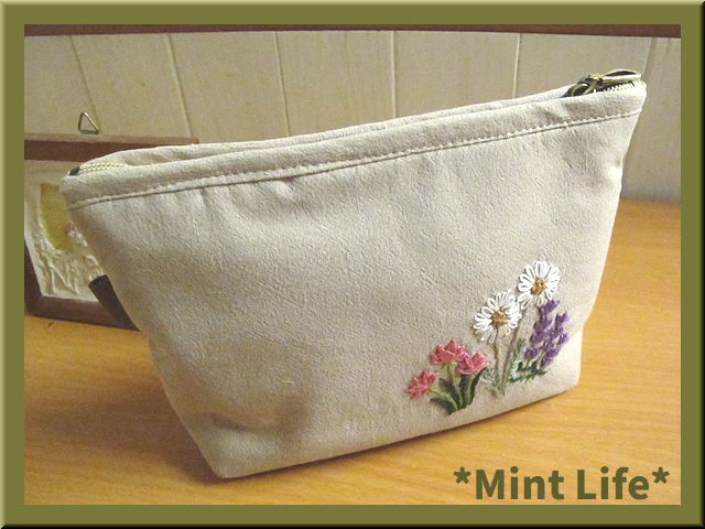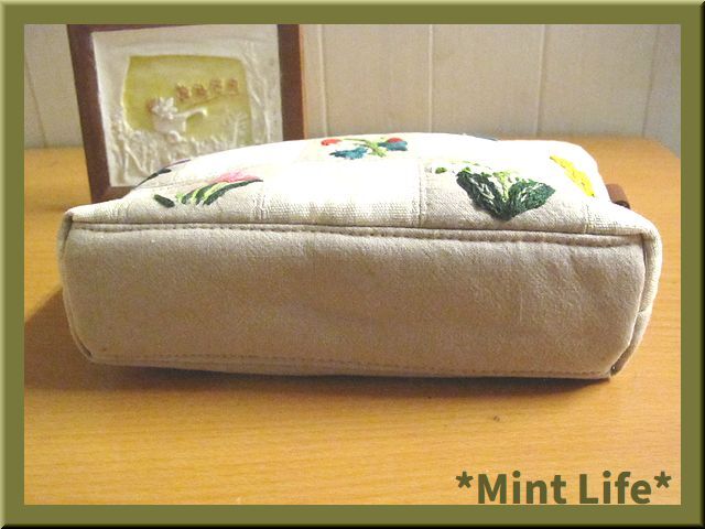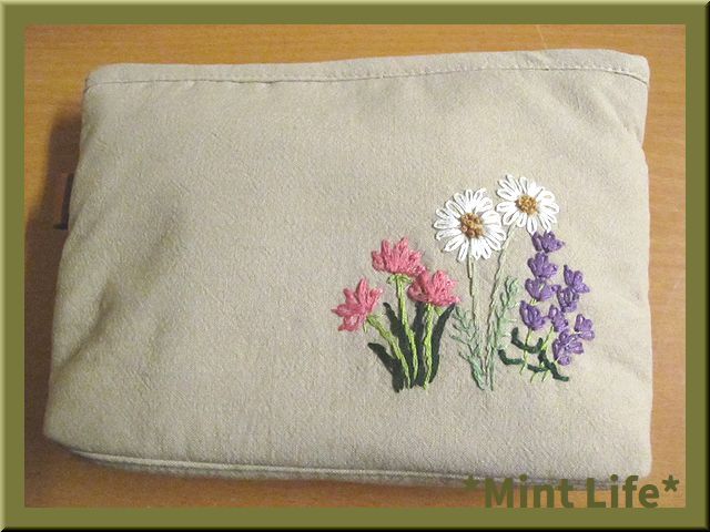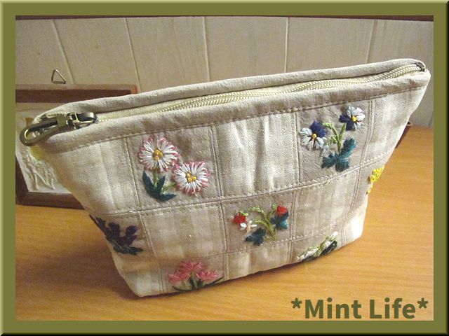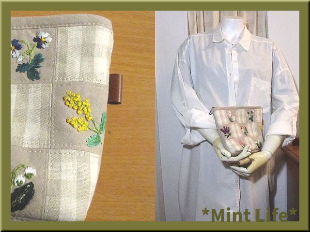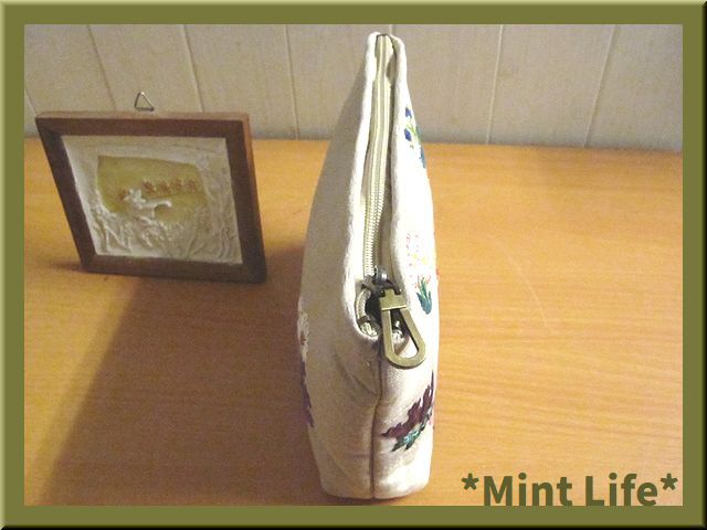 | *Mint Life* ハンドメイド 「ハーフリネンポーチ」 手刺しゅう | ||||