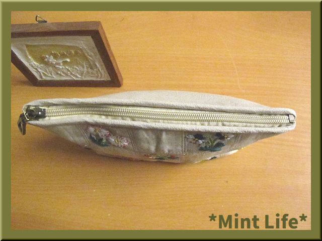 | *商品詳細* 商品名: *Mint Life* ハンドメイド 「ハーフリネンポーチ」 手刺しゅう 使用生地: リネン&コットン混生地(ベージュ色)リネン100%生地(チェック地) 内布: コットン生地(緑系花柄) サイズ: 幅: 約24㎝ (ファスナー部分で) 高さ: 16㎝(中央で) 底: 約5㎝×19㎝ 重さ: 約106 g(梱包前) (採寸の誤差はご了承ください。) *形の説明* 底ありのファスナー開きの「ポーチ」です。 内布には「ポケット」が大&小の2か所ございます。 「化粧ケース」や「小物入れ」やその他お使いいただけます。 ポーチ口は、23㎝のファスナーを使用しました。 前面はパッチワークし、無地部分に色々な花の手刺しゅうを刺しています。(後面にも刺しゅうあり) 表生地裏には、「接着芯」&「キルト芯」を貼り、内布裏にも「接着芯」を貼っています。 合皮の「タブ」付です。 | ||||