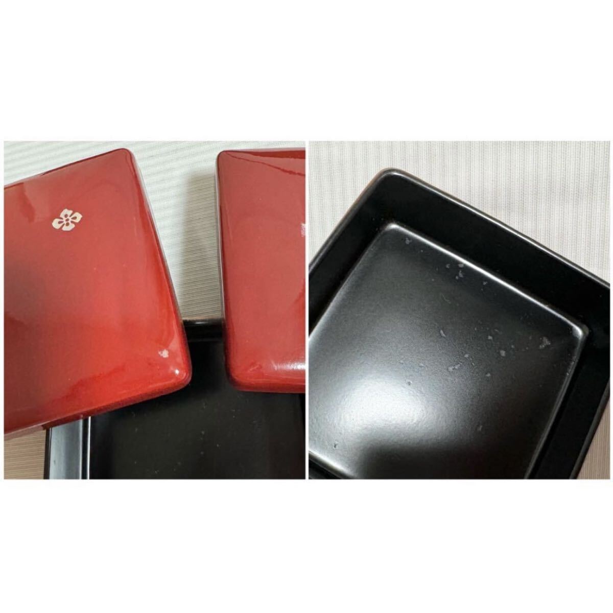 ※お重箱には元から蓋の表面(角)と、一段の中にスレがございました。画像にてご確認くださいませ。