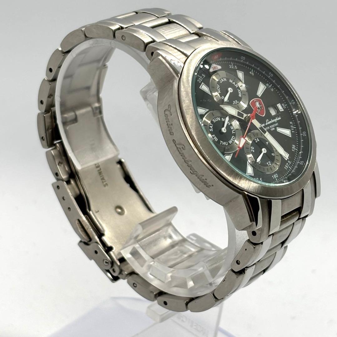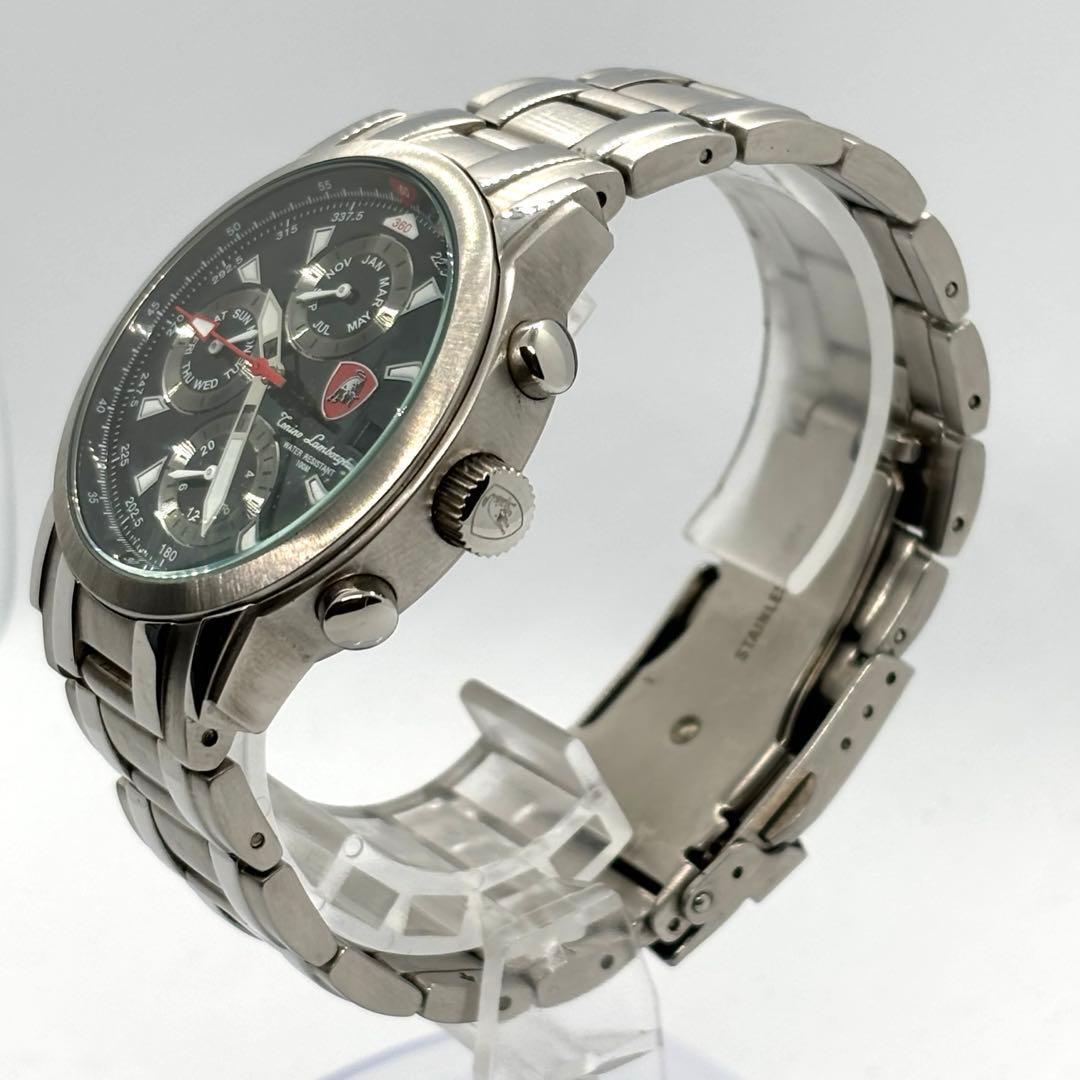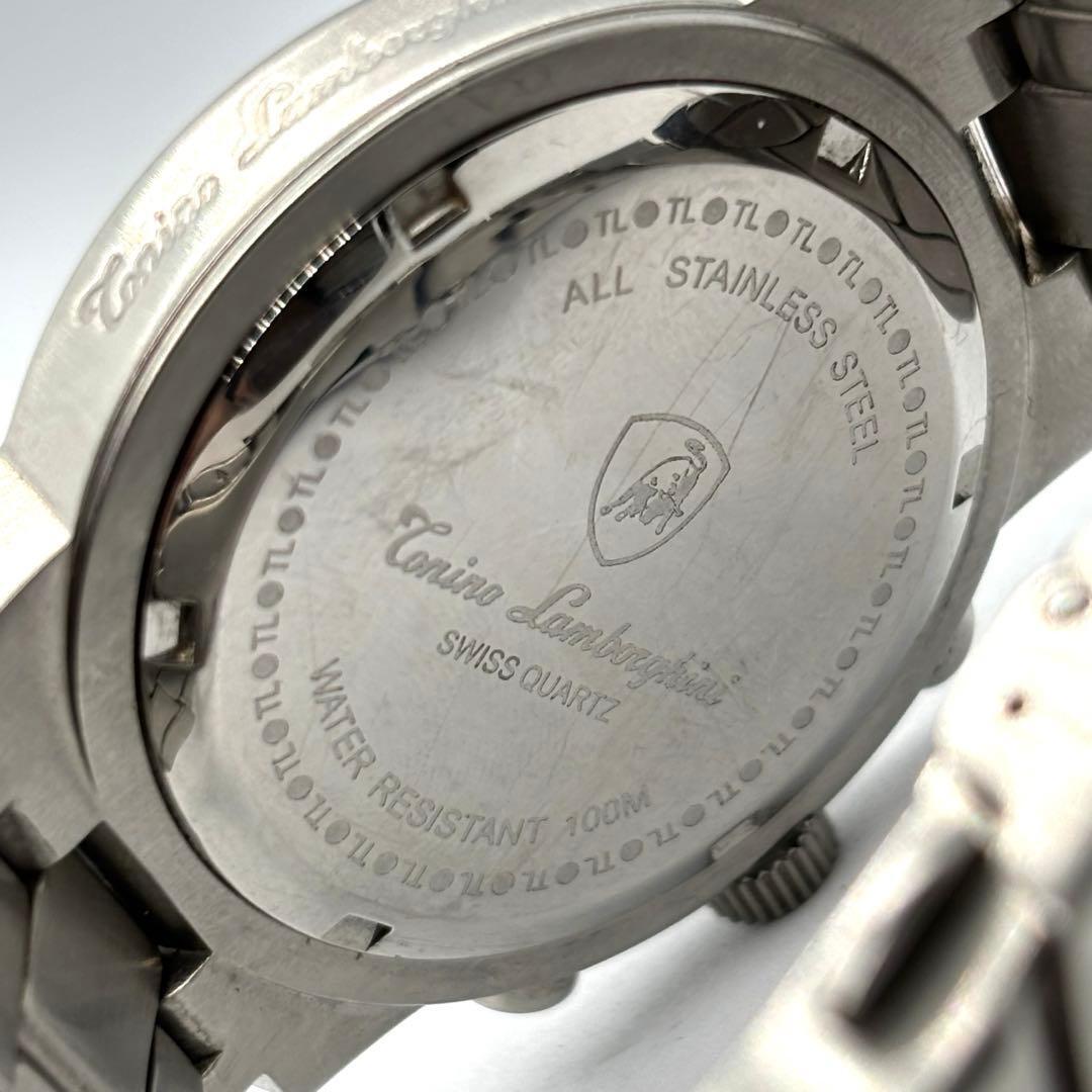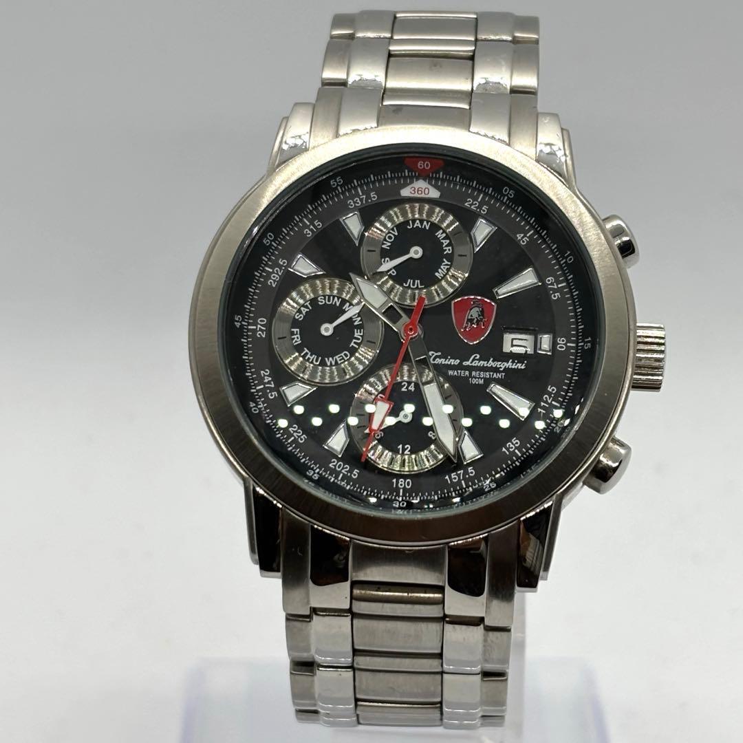 【稼働/美品】Tonino Lamborghini/トニーノ ランボルギーニ 腕時計 クォーツ クロノグラフ デイト ブラック文字盤 100M防水 シルバー メンズ