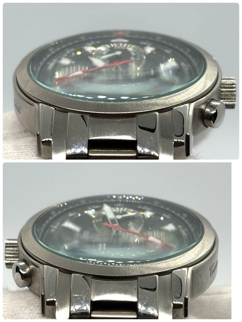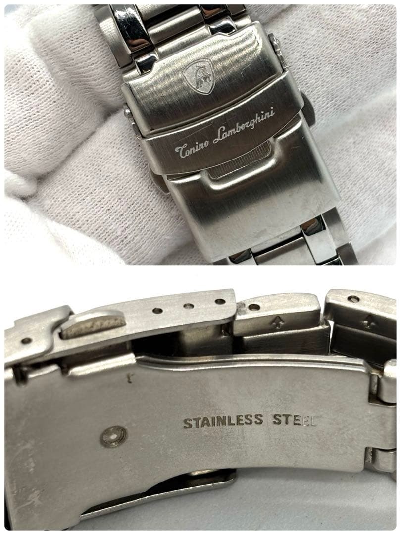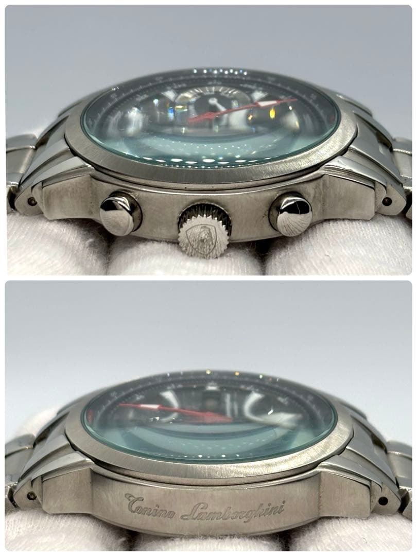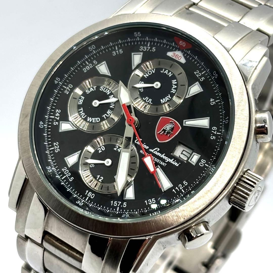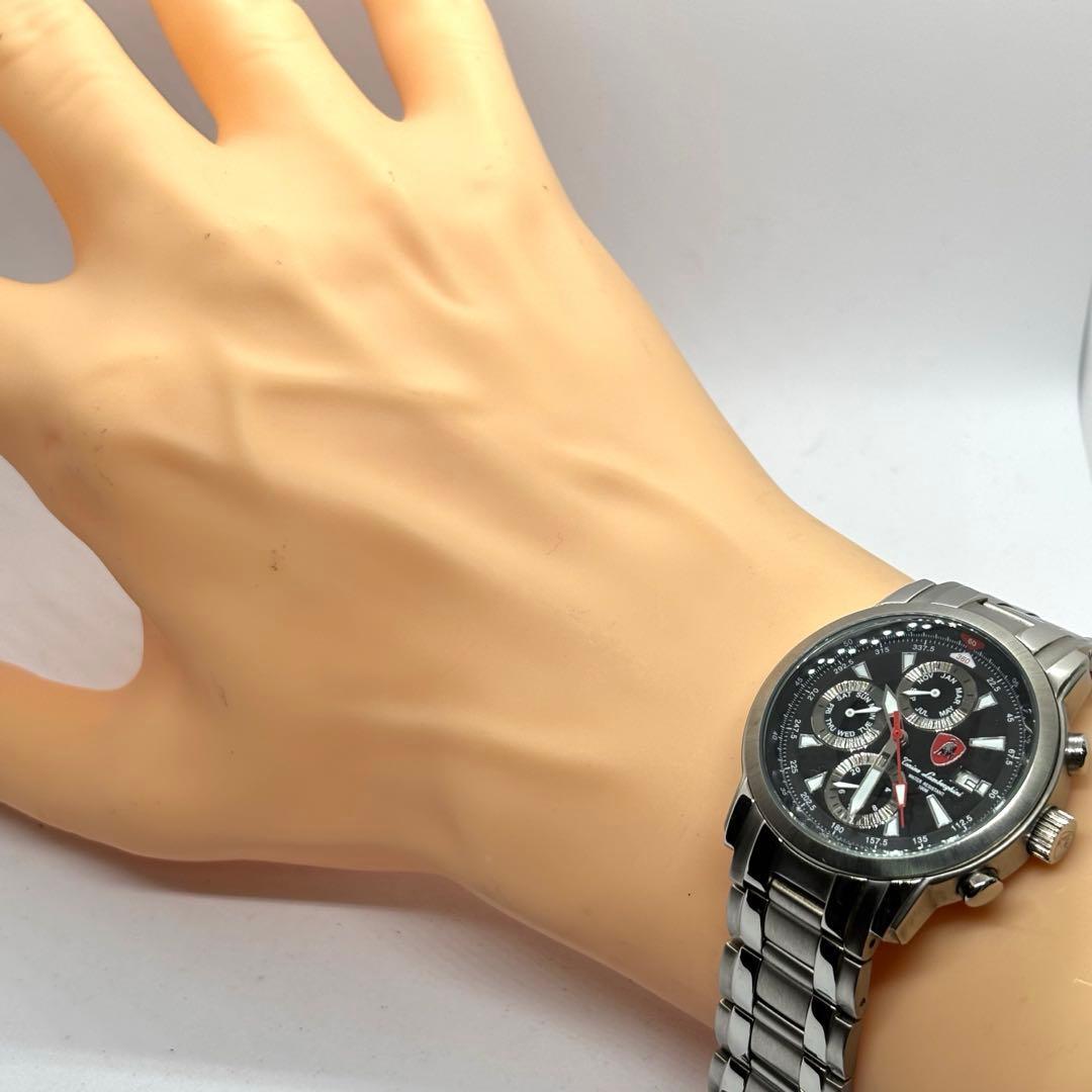 【稼働/美品】Tonino Lamborghini/トニーノ ランボルギーニ 腕時計 クォーツ クロノグラフ デイト ブラック文字盤 100M防水 シルバー メンズ
